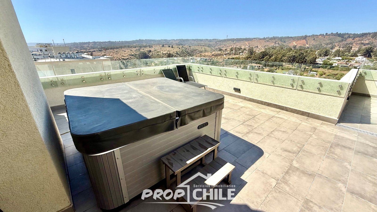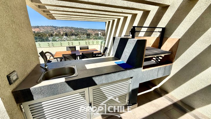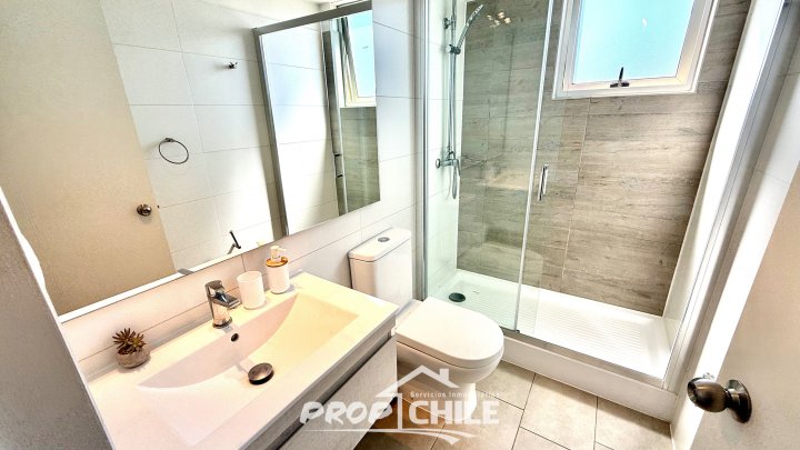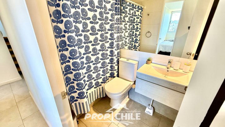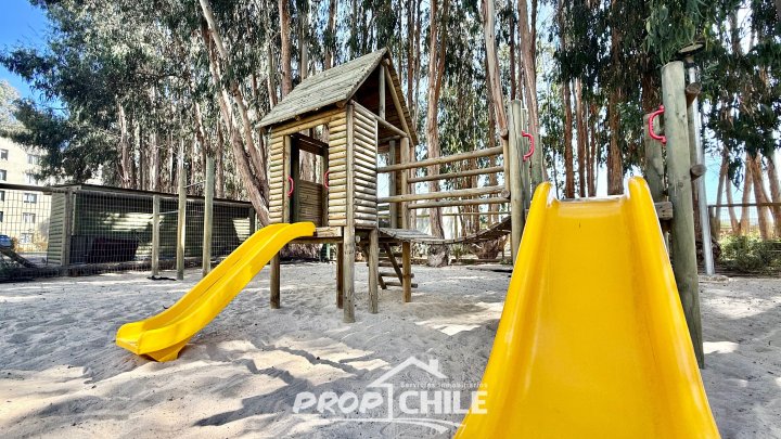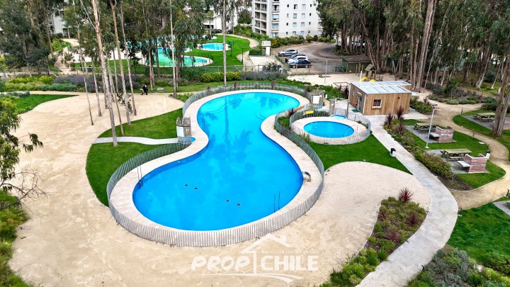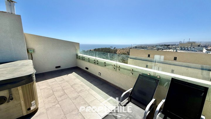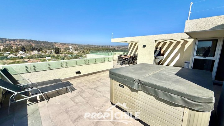 PROPChile® Gestión Inmobiliaria VENDE hermoso Penthouse de 2 niveles, Semi nuevo, en el balneario de Algarrobo, ubicado a 90 minutos de Santiago y a 40 minutos de Viña del Mar y Valparaíso. En el primer nivel cuenta con amplio living comedor con moderna cocina americana, balcón com amplia vista panorámica, acogedor dormitorio principal con baño en suite, 2 dormitorios secundarios y baño general o de visitas. Todos los dormitorios cuentan con closets y son muy iluminados. En su segundo nivel encontramos su amplia terraza panorámica de 79 m2 la cual está implementada con quincho y jacuzzi privados. El departamento incluye además un estacionamiento subterráneo y una bodega. El condominio es cerrado, con altos estándares de seguridad (24/7) y destaca por sus espectaculares áreas comunes contando con: -Piscinas recreativas. -Saunas al aire libre y de interior. -Zona de parrillas con mesas. -Juegos para niños. -Piscina de entrenamiento. -Salones multiuso con cafetería. -Gimnasio, entre otros. -Hermosas y tranquilas zonas verdes -Cercano a playas y comercios Vive en un maravilloso entorno natural, en este hermoso Penthouse exclusivo, cercano a playas, gastronomía y servicios. Ven a conocerlo, contáctanos! Esta es otra propiedad de PROPChile® Gestión Inmobiliaria.
