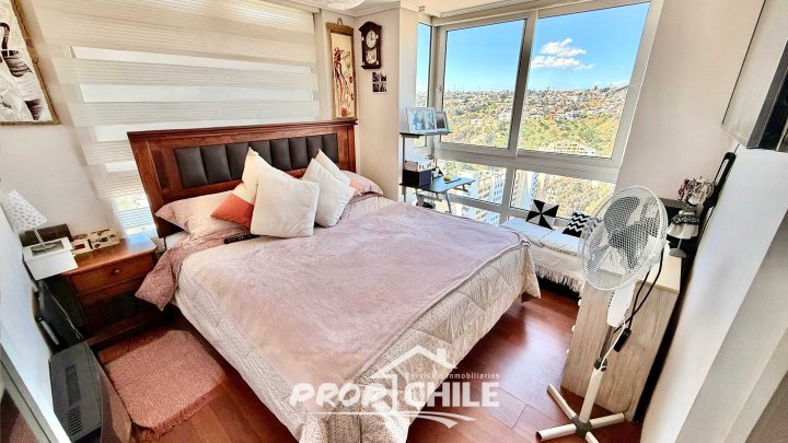 En VENTA Departamento 2D+2B, Valparaíso PROPChile® Gestión Inmobiliaria VENDE hermoso departamento ubicado en Cerro Las Delicias, Valparaíso. Ven a conocer este acogedor departamento de 58 m² que gracias a su orientación privilegiada, disfrutarás de luz solar durante todo el día, iluminando cada rincón. Destacan los amplios ventanales de piso a techo de su dormitorio principal que te brindan una vista elevada y amplia. La propiedad cuenta con balcón cerrado que no solo amplía la superficie útil del living, sino que también regala una hermosa vista panorámica de la ciudad y el mar. Ubicado en un polo urbano consolidado de Valparaíso, este departamento te conecta con todo lo que necesitas. A solo 10 minutos del centro de la ciudad, tendrás acceso a una variada oferta de locomoción pública, centros de salud, centros educativos, supermercados, servicios y comercios en general. Además, su excelente conexión con la Ruta 68 facilita los traslados hacia Santiago, convirtiéndolo en un punto estratégico para vivir o invertir. El condominio ofrece un entorno seguro y tranquilo, con acceso controlado, portón vehicular automático y seguridad 24/7. Podrás disfrutar de sus áreas verdes, gimnasio, quincho para reuniones sociales, entre otros, todo pensado para tu comodidad.[5] Principales características: * 2 dormitorios (principal con walking clóset). * 2 baños completos (1 en suite) * Cocina americana equipada. * Conexión para lavadora. * Balcón cerrado con vista panorámica. * Bodega incluida. * Superficie total de 58 m². * Opción de adquirir un estacionamiento. No dejes pasar esta oportunidad única de vivir con una vista privilegiada y todas las comodidades. ¡Contáctanos para agendar tu visita!