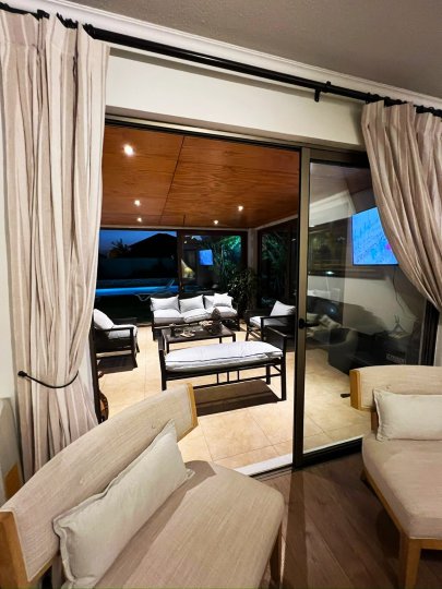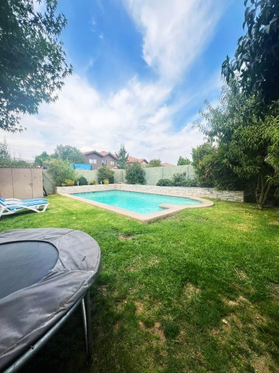 Se vende preciosa casa en Condominio de Chicureo, LLEGAR Y HABITAR Cercano a 2 supermercados, 2 strip center, farmacias, colegios, autopista. Nivel 1 Hall de acceso, baño de visitas, amplia cocina con comedor de diario y full equipada Amplia logia cerrada más un 4° dormitorio Living comedor con salida a amplia terraza cerrada con termopanel que tiene protección solar y acústica, con lindo quincho incorporado Lindo patio con jardín formado y piscina (7,5 x 4 mts) Amplio dormitorio principal en suite, con aire acondicionado Nivel 2 2 Amplios dormitorios que comparten baño, sala de estar de muy buen tamaño Dormitorios equipados con aire acondicionado Contacto: Jeannette 998473288 Sergio 998473294