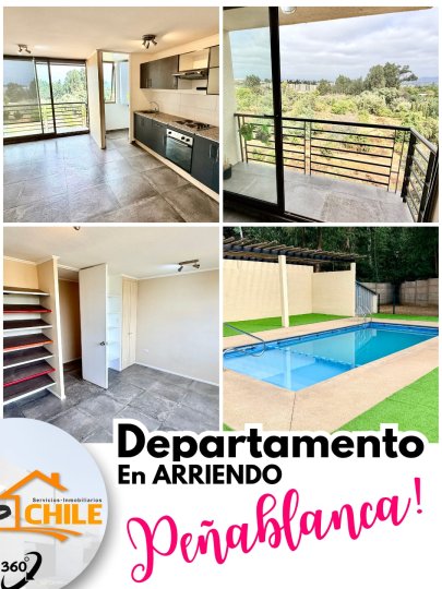 Departamento en Arriendo 2D+1B, Peñablanca, Villa Alemana. Hola, PROPChile® Gestión Inmobiliaria ARRIENDA Hermoso departamento en el sector de Peñablanca, comuna de Villa Alemana. Cuenta con amplio Living comedor, 2 balcones, cocina americana con cubierta de granito y logia, 2 dormitorios y 1 baño. El arriendo incluye estacionamiento. Cabe destacar que el departamento cuenta con aire acondicionado en su amplio dormitorio principal, hermosos pisos de porcelanato, todo eléctrico (no ocupa gas), la puerta principal viene con cerradura electrónica de acceso inteligente, el balcón tiene una hermosa vista elevada de la ciudad/bosque en orientación poniente y en general todos los espacios son muy amplios e iluminados. En cuanto al condominio, cuenta ascensores, piscina, quinchos, sala multiuso, juegos para niños, acceso controlado, seguridad 24/7, portón automático, estacionamiento de visitas, entre otros. Excelente ubicación. CARACTERÍSTICAS: - 61,5 m² de superficie - 2 dormitorios - 1 baños - Living comedor - Cocina americana - Logia - 2 balcones - Aire acondicionado en dormitorio principal - Pisos de porcelanato - Orientación poniente - Excelente iluminación - 1 estacionamiento - Estacionamientos de visita - Excelente ubicación - Seguridad 24/7 - Piscina - Quinchos - Sala multiuso - Edificio con ascensor - Entorno seguro y tranquilo - Pet friendly VALORES: Arriendo $410.000 Gastos comunes a parte $90.000 Renta mínima $1.600.000 (se puede complementar) LISTA DE REQUERIMIENTOS ESTÁNDAR PARA ARRENDAR PARTICULAR: - 6 últimas liquidaciones de sueldo. - 12 últimas cotizaciones previsionales. - Se solicita Informe Comercial. - Al momento de la firma de contrato se debe contar con el mes de arriendo + el mes de garantía + comisión corretaje (50% de un mes). Escríbenos antes de que alguien más lo arriende. No pierdas la oportunidad!