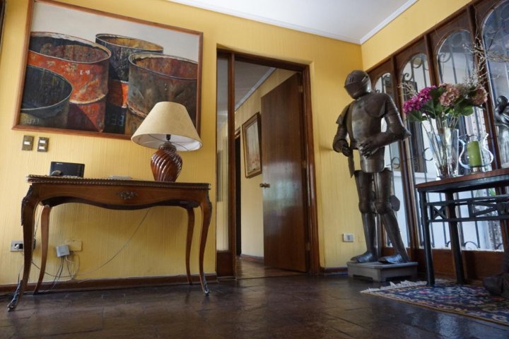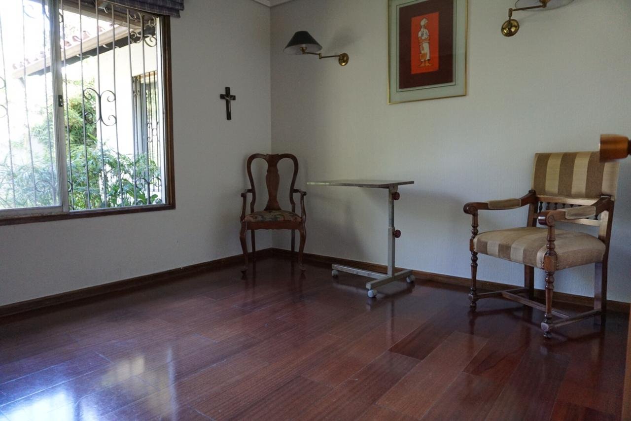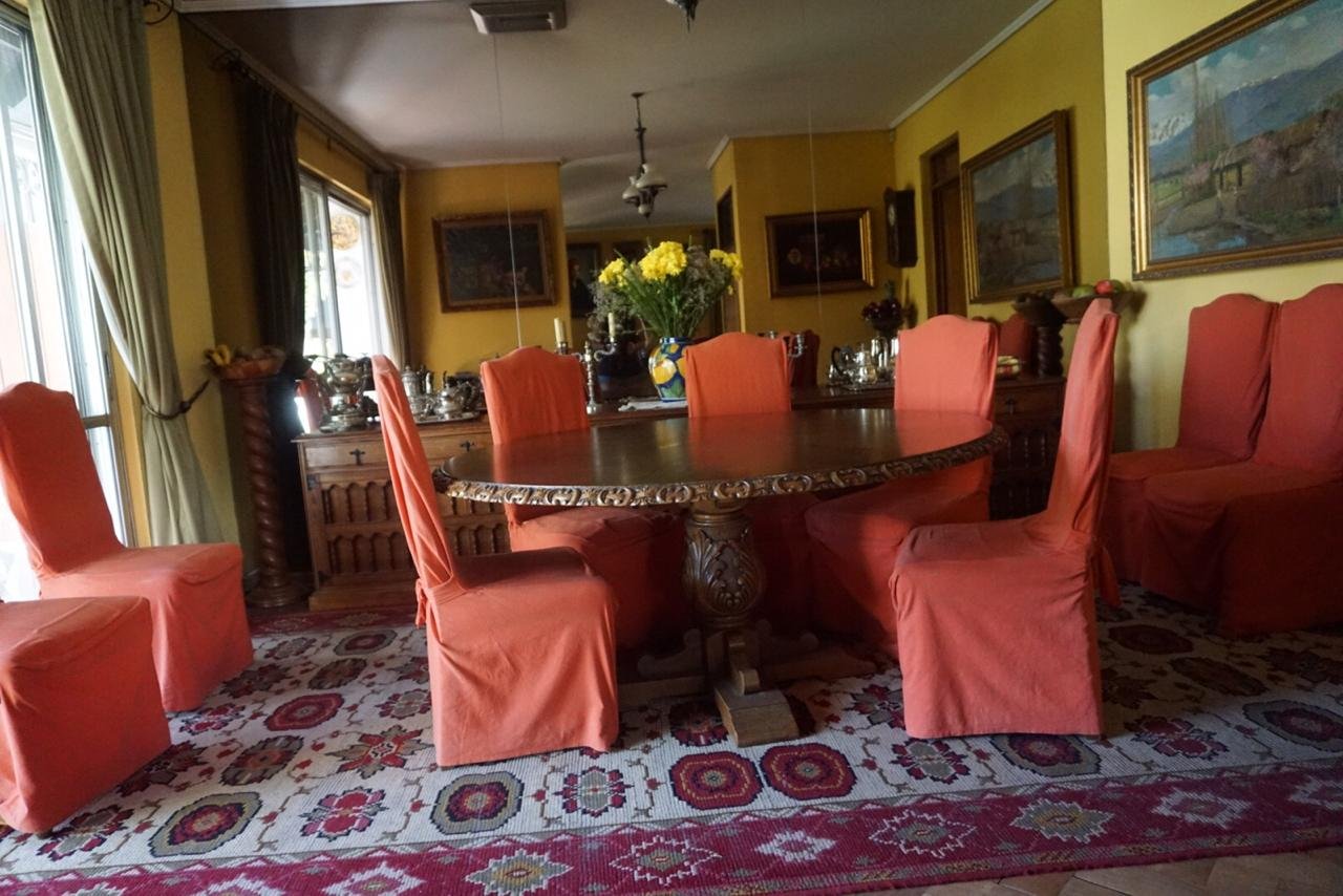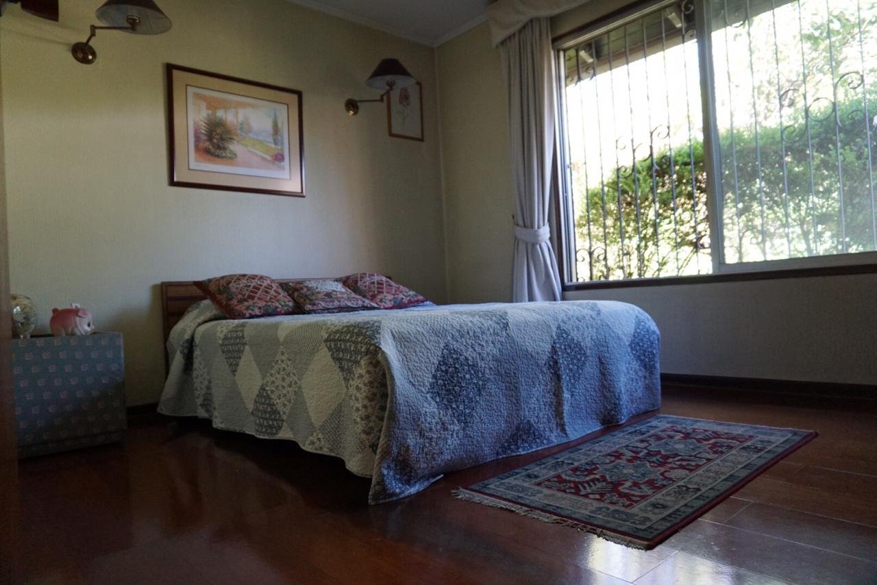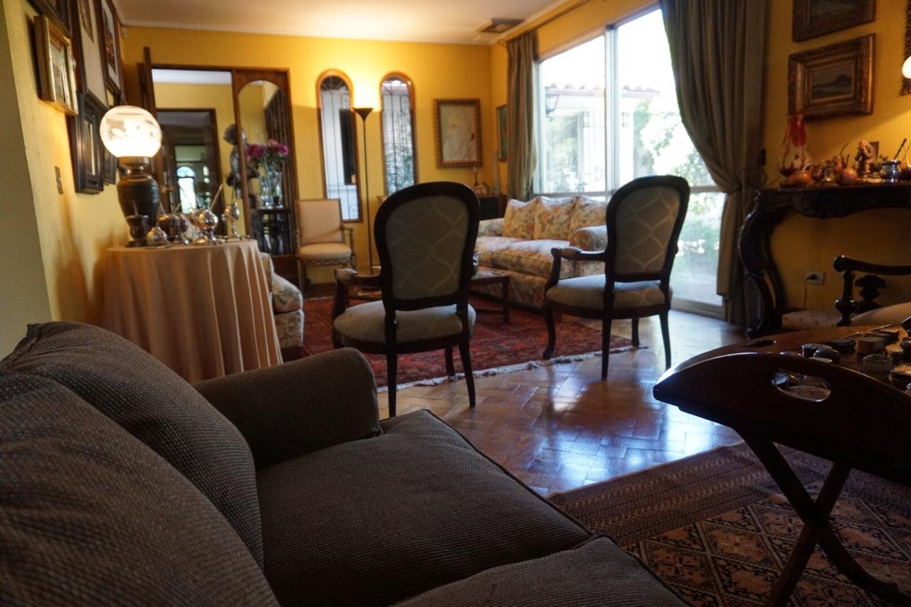 Linda casa estilo Colonial, cercana a colegios, movilización, bancos, supermercado.etc. Hall de entrada, living-bar- comedor separados, con salida a terraza. Cocina con comedor de diario, patio de servicio, loggia exterior , dos piezas de servicio, baño. Dormitorio en suite. Tres dormitorios, un baño. Salita de estar Baño de visita Segundo piso: 5º dormitorio o escritorio 1 baño Sala de estar. Jardín formado con riego automático , piscina. Amplia bodega con cava de vinos subterránea. Calefacción central. Rejas en ventanas Estacionamiento para 6 autos, con portón automático M2 proporcionado por dueño Características propiedad alarma, antejardín, comedor de diario, escritorio, lavadero exterior, living comedor separado, patio de servicio, pieza de planchado, pieza de servicio, piscina, quincho, reja en ventanas, riego automático, sala de estar, chimenea, cocina amoblada, hall, portón automático Características comunidad citófono, estacionamiento de visitas Comunicarse por Whatsapp