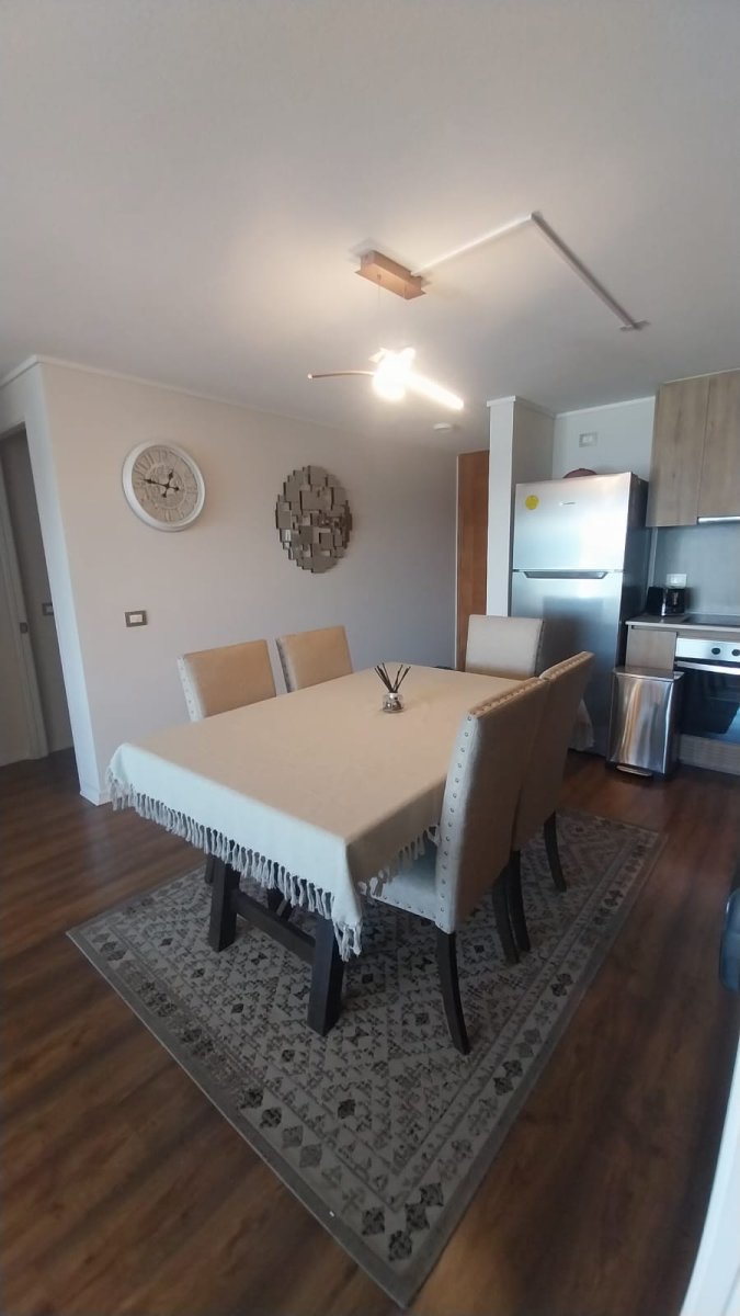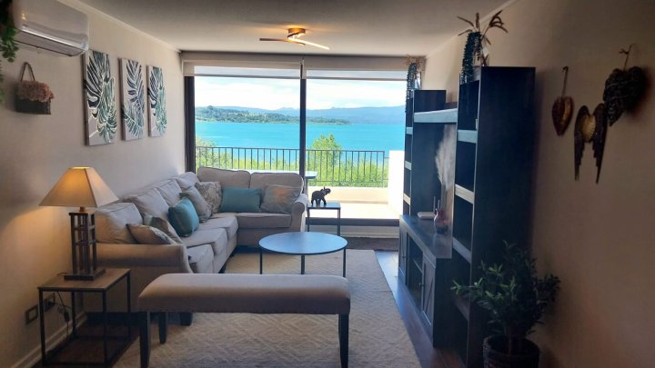 Grupo Lake tiene disponible en Arriendo hermoso Departamento como nuevo y Amoblado frente a Lago Villarrica y con vistas a jardín y piscina. Ubicado en pleno Centro cerca de todo el comercio de Villarrica. Cuenta con: 3 Dormitorios 1 en suite 2 Baños completos Closet amplios en dormitorios Closet dobles en pasillo Cocina encimera eléctrica Aire Acondicionados Estacionamiento Tandem Bodega Muebles de excelente calidad Cortinas roller Terraza techada Condominio cuenta: Seguridad y conserjería 24/7 Piscina Club house Valor Arriendo mensual $900.000.- más gasto común $150.000.- aproximadamente Más comisión corretaje