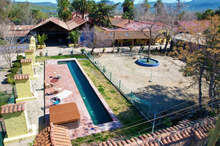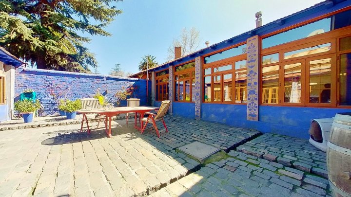 En Venta casona Chilena de grandes y confortables espacios, a tan solo 25 minutos de Santiago por Autopista Los Libertadores. 1000 mts 2 de construcción dentro de amplio terreno de 5000 mts2. Cuenta con galpón de 100 mts2 para estacionamientos techados para varios autos. Ubicada en el centro del pueblo de Chacabuco. Ideal para realizar eventos, AIR B&B, hospedaje , Hotel Boutique, "Senior Suites" o simplemente para la vida familiar. 5 habitaciones, 3 baños. Distribución: amplios Living - comedor separados, el living con salida a una terraza interior. Cocina moderna, amoblada y de finas terminaciones, muy acogedora, gran alacena, amplitud en todos sus ambientes. Con cocina a leña y cocina a gas. Dormitorio principal en suite con moderno baño con tina a la vista, walking closet. 3 dormitorios independientes , y un segundo dormitorio en suite. Ventanas termopanel y puertas pvc imitación madera, terraza interior y exterior, gran loggia y centro de lavado, caldera, paneles solares, generador eléctrico, poso profundo de agua. Cortinas de seguridad. Oficina independiente, gimnasio, bodega, piscina para nado e hidromasaje exterior, horno de barro. La propiedad además cuenta con un departamento independiente con baño y cocina para personal de servicio de aprox 70 mts2. En Chacabuco, aire limpio, gran calidad de vida, a pasos de "Hacienda Chacabuco".