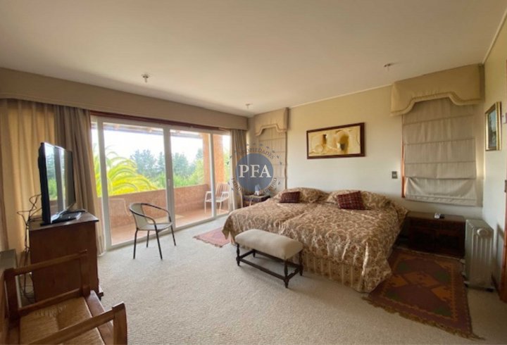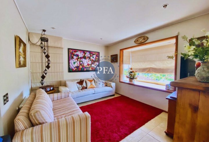 Parcela con Casa en el exclusivo Condominio Puerta Del Mar, Algarrobo. Camino a Casablanca en el límite urbano Sur -Poniente de la comuna de Algarrobo. A 90 kilomentros de Santiago, con salida directa a la Ruta F-90 y a 5 km del centro cívico de Algarrobo, Supermercado Lider y comercio en general, playa. EL Condominio cuenta con excelente infraestructura y completa urbanización con calles pavimentadas, red de agua con conexión a empresa Esval, electrificación con luminarias exteriores, guardias con vigilancia 24/7. La propiedad esta formada por una edificación principal aislada de dos pisos, un piso zócalo con departamento independiente -Primer Piso: 172,00 mt2 -Dormitorio Principal grande con lavamanos central y dos baños en la Suite. Con terraza y vista al jardin. Walking Closet - Segundo Dormitorio con vista al jardín - Baño completo al frente -Baño de Visita lado Hall de entrada. -Living con chimenea y vigas a la vista con salida a terraza (deck de madera) -Comedor aparte -Gran Cocina con Logia y Estar incorporado a la cocina. - Dormitorio de Servicio con baño independiente. Segundo Piso: 56,0 mt2 - Gran espacio con sala de estar y 2 dormitorios con Baño completo. - Zócalo 56,8 mt2 :Departamento independiente para visitas con cocina americana, estar y dormitorio para dos camas y baño Exterior: Gran piscina con árboles frutales, jardín formado, riego por goteo. Quincho de 45 mt2, cerrado muy completo con cocina, refrigerador, comedor y parrila exterior. Bodega / baño: 33,5 mt2 Sector independiente que se puede ocupar para guardar, pieza de servicio, camarín, etc. con baños Infraestructura del Condominio: Seguridad 24/ 7 con guardias y control de ingreso Club House con salón eventos 2 Piscinas Cancha de Tenis. Juegos para niños Gastos Comunes Condominio: $150.000 aproximadamente Contribuciones: $134.000 c/cuota Solo verdaderos interesados con crédito aprobado o pago contado. Informe de Tasación Excelente oportunidad, Agenda visita