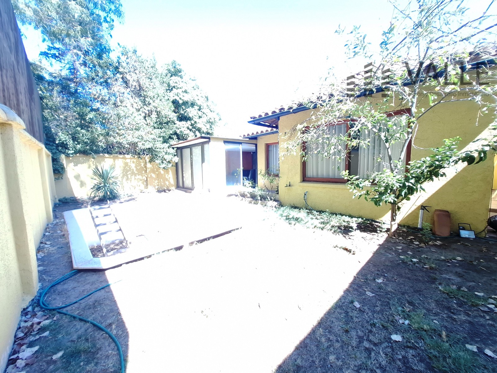 Patio trasero con piscina.