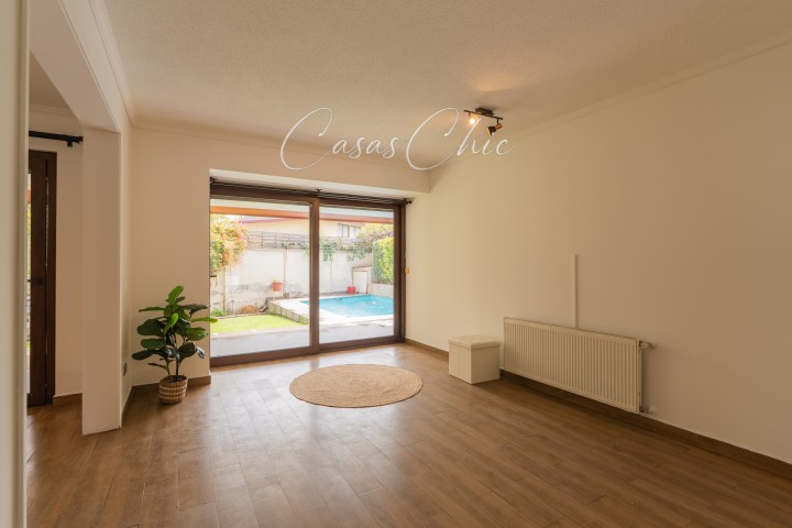 En CASASCHIC corredoras de propiedades, te queremos presentar esta casa que nos encanta y que es una excelente oportunidad en uno de los barrios con mejor ubicación de Peñalolén. Casa totalmente remodelada, en impecable estado, lista para llegar y habitar. Su renovación integral considera ventanas de termopanel en toda la casa, pisos de alta calidad en toda la casa, ampliaciones regularizadas en sus dormitorios del segundo piso. Ubicada dentro de condominio, no perimetral, con seguridad 24/7 Cuenta con 4 dormitorios + servicio u oficina. Dormitorio principal en suite, de muy buen tamaño y en el primer piso. 5 Baños. Cocina amplia, con comedor de diario. Piso 2, Amplia sala de estar. 2 dormitorios, uno en suite. Ambos dormitorios, con espacio separado de escritorio, vestidor o lugar de juegos. Su patio es muy práctico, tremendamente acogedor, con piscina, terraza y espacios luminosos,. Ubicación privilegiada a pasos del Metro Quilín, cercana a clínicas, hospitales, colegios, supermercados y centros comerciales. Una propiedad con excelente conectividad y calidad de vida. Ideal para quienes buscan comodidad, seguridad y entorno consolidado. Contáctanos para coordinar tu visita.