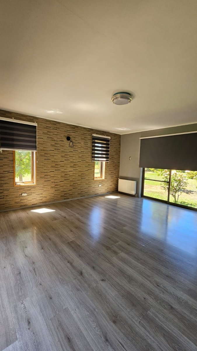 📍Sector Camino del Agua, Chillán Se arrienda gran casa de 250 m² aprox. de construcción en parcela de 5.000 m², ubicada en condominio con acceso controlado, que destaca por su entorno natural, amplios espacios y excelente equipamiento. Ideal para quienes buscan tranquilidad, comodidad y calidad de vida. Distribución Interior • 5 dormitorios, todos con clóset • 4 baños • Dormitorio de servicio con baño • Amplio living–comedor • Cocina equipada • Sala de estar Equipamiento y Comodidades • Calefacción central a leña • Estufa a leña • 3 equipos de aire acondicionado • Generador eléctrico • Ventanas con mosquiteros • Bodega Exterior • Hermosos jardines y árboles • Piscina • Amplio quincho con baño • Estacionamiento techado para 3 vehículos • Portón eléctrico • Tres pozos de agua Valor de Arriendo $1.150.000 mensuales 50% comisión de corretaje