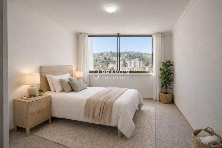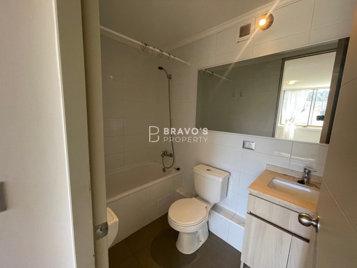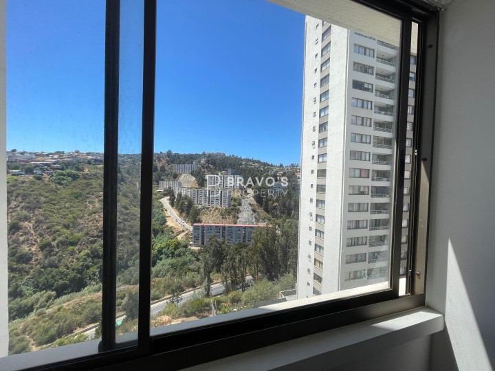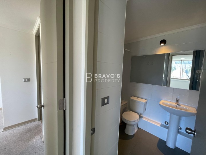 Depto Nuevo 2D2B Sector Parque Inglés Valparaíso Vive la tranquilidad del Parque Inglés con una vista privilegiada al bosque natural y la Ruta 68. Este departamento destaca por su orientación norte, ofreciendo luz y calidez en todas sus áreas, además de atardeceres de postal. Distribución ideal: - 2 dormitorios amplios, con clóset - 2 baños, uno en suite - Cocina equipada con encimera a gas, horno empotrado y abundante almacenaje - Living comedor cómodo, conectado a terraza con vista al bosque - Superficie total: 55,63 m2 (incluye terraza de 3,87 m2) - Ubicado en piso 12 de edificio de 18 pisos - Año de construcción: 2024 - Balcón/terraza Condominio con excelentes amenities: - Conserjería 24/7 - Gimnasio - Lavandería - Sala multiuso - 2 quinchos - Sala cowork Conecta fácil con la ciudad por Ruta 68 y accede a servicios, supermercados y colegios cercanos. Precio/Operación: CLP $515.000 en arriendo Gastos comunes: CLP 0 Incluidos valor Arriendo Ideal para quienes buscan vida urbana en armonía con la naturaleza en Valparaíso. Agenda tu visita y conócelo. Contacto WhatsApp: +56-9-34004474.