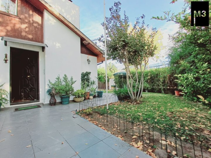 Se vende amplia casa de 2 pisos año 1963, completamente remodelada, en excelentes condiciones y con una ubicación privilegiada pues se encuentra a tan sólo 1 cuadra de Av. Las Condes, 10 minutos caminando a Mall Alto Las Condes y los servicios propios del sector. - 171 m2 construidos / 325 m2 totales. - Amplio antejardín, con estacionamiento para 2 autos grandes. - Piso parquet vitrificado en primer piso y flotante en el segundo. - La casa cuenta con aislación térmica en techo para evitar calor de verano en piso 2. DISTRIBUCIÓN: - Piso 1: Living -comedor unidos con chimenea. Sala Estar, Baño Visitas completo, Dormitorio principal amplio en suite con walk-in closet. Escritorio o dormitorio para guagua. Cocina independiente iluminada y amplia, con acceso a patio interior como logia y acceso de servicio lateral. Amplia terraza ideal para equipar con quincho. - Piso 2: 3 dormitorios y un baño completo que comparten. Realmente hermosa!