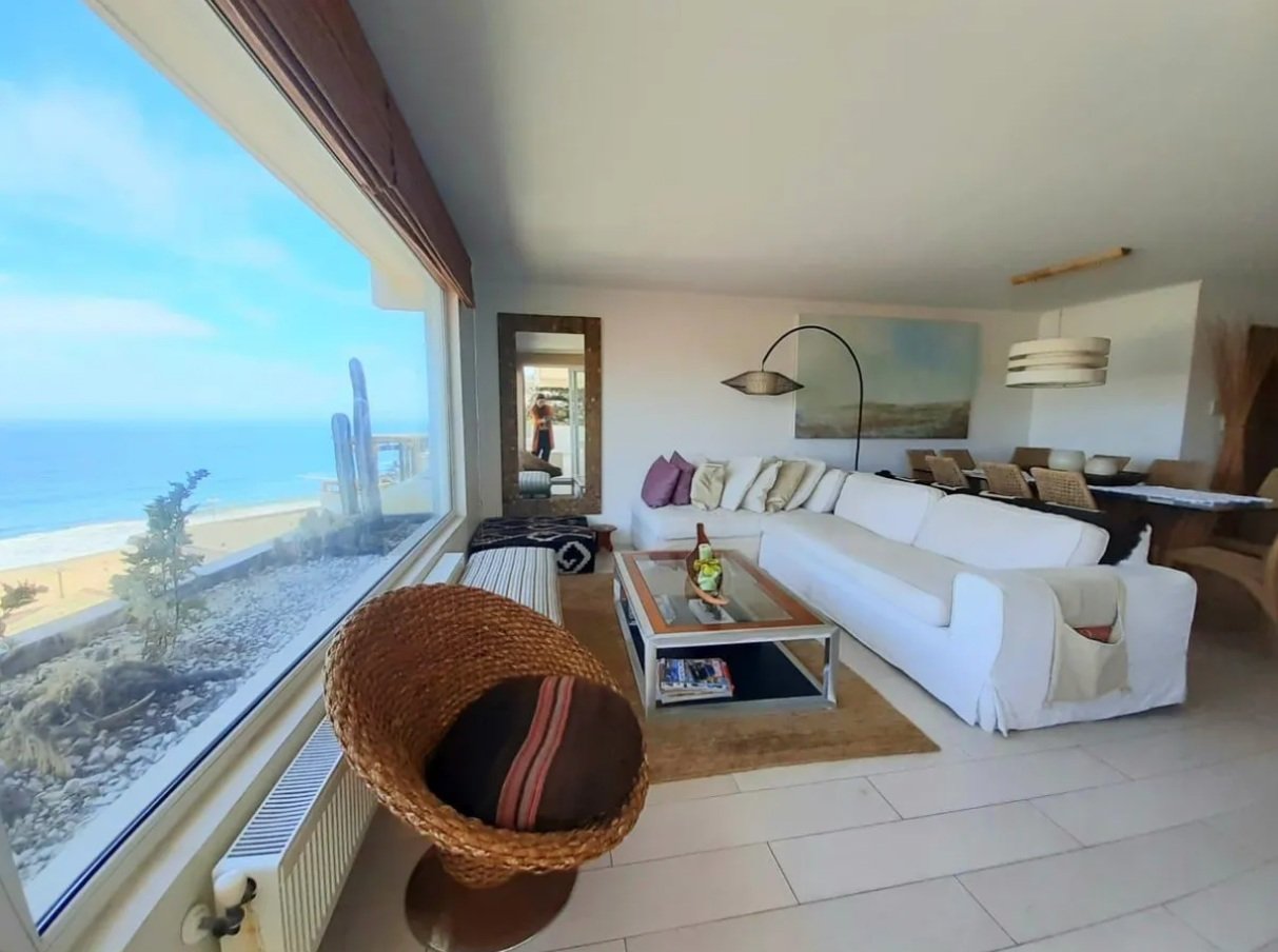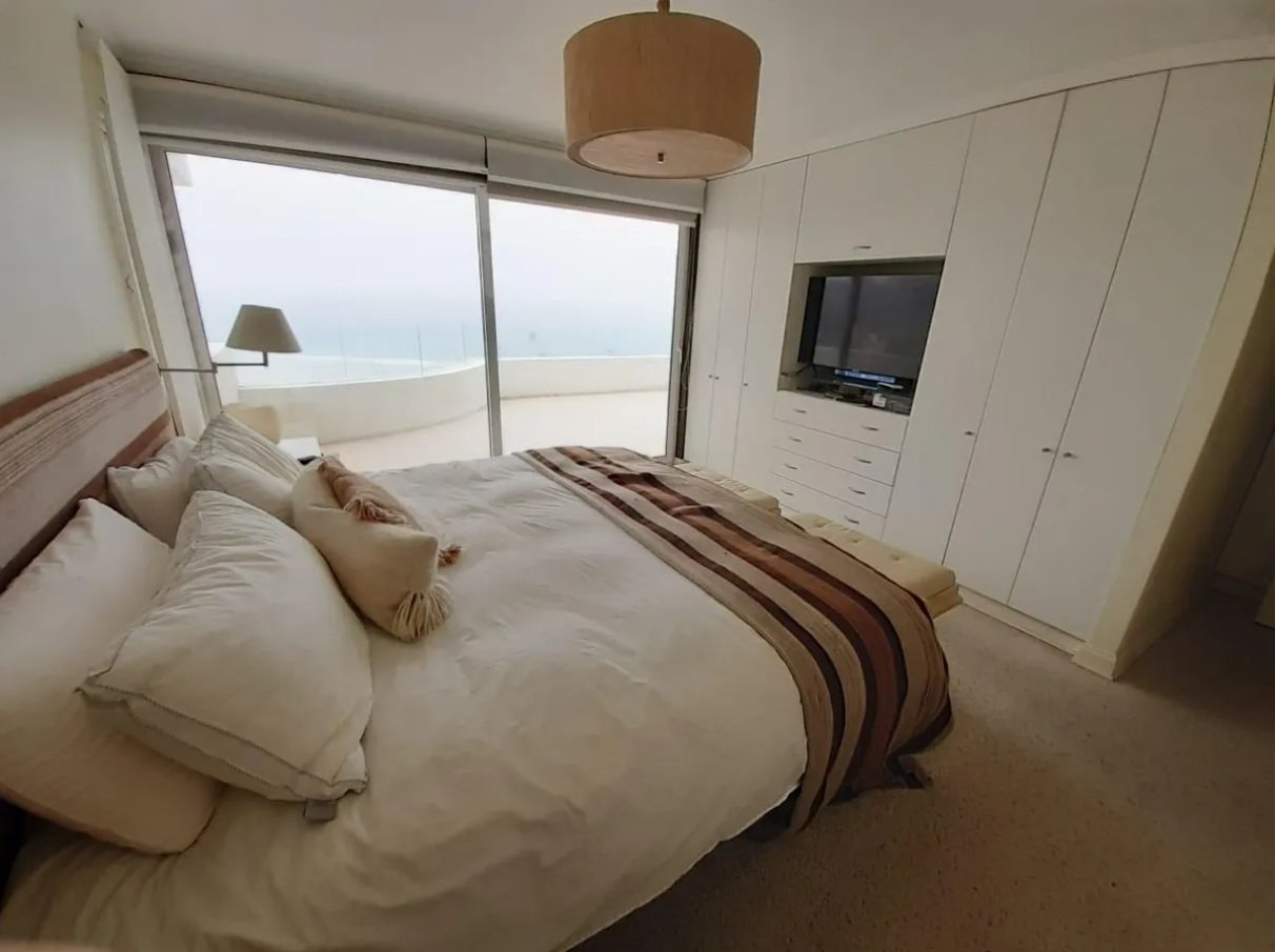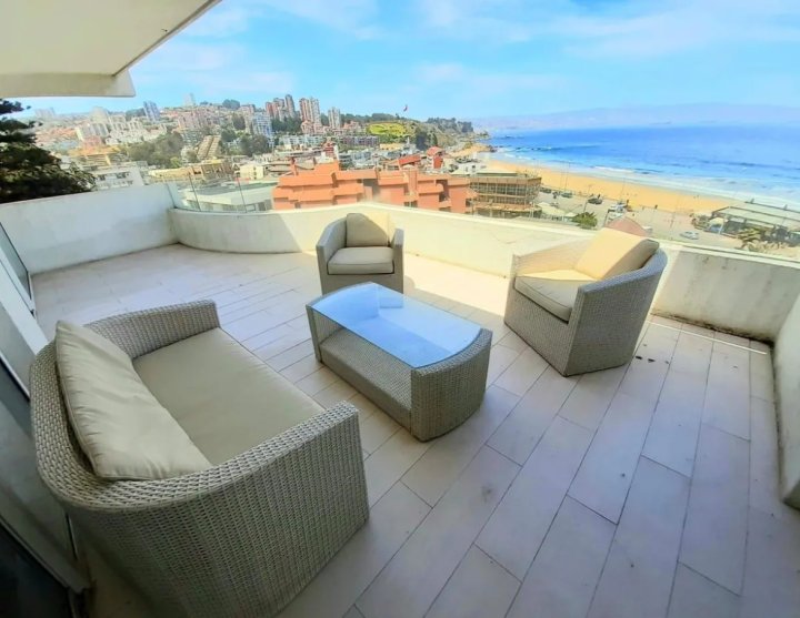 Amplio departamento remodelado con privilegiada vista al mar, ubicado en el sector de Reñaca, a pasos de la playa, comercio y locomoción. El departamento cuenta con 4 dormitorios con closets, dos de ellos con salida a una amplia terraza exterior. Dormitorio principal en suite con jacuzzi y cuarto dormitorio también en suite. 3 baños completos, dos con luz y ventilación natural. Closet adicional en pasillo. Amplio living comedor con salida a gran terraza, con excelente vista abierta al mar. Cocina integrada full equipada. Logia independiente con mampara. El edificio no cuenta con ascensor. El departamento se encuentra en un quinto piso, pero corresponde al nivel de la calle trasera, por lo que el acceso requiere sólo subir unos pocos peldaños. Ambos accesos se realizan por calles tranquilas de bajo flujo. La propiedad incluye 2 estacionamientos techados y 1 bodega. Gastos comunes aproximados: $136.000, incluyen consumo de agua (variable según uso).