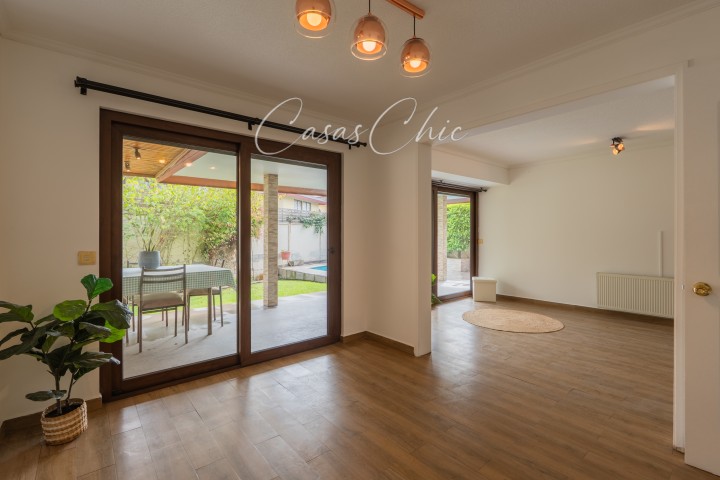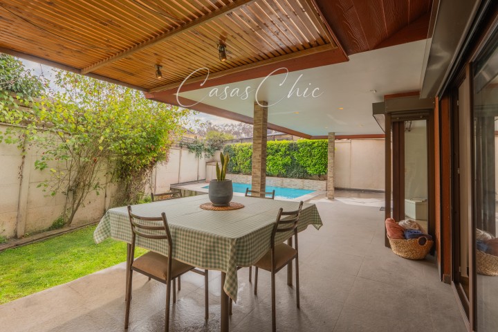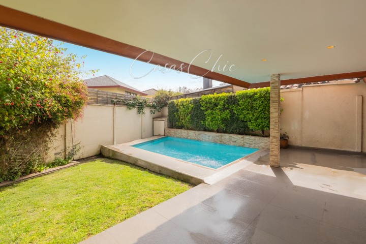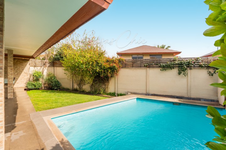 En CASASCHIC corredoras de propiedades, te queremos presentar esta casa que nos encanta y que es una excelente oportunidad en uno de los barrios con mejor ubicación de Peñalolén. Casa totalmente remodelada, en impecable estado, lista para llegar y habitar. Su renovación integral considera ventanas de termopanel en toda la casa, pisos de alta calidad en toda la casa, ampliaciones regularizadas en sus dormitorios del segundo piso. Ubicada dentro de condominio, no perimetral, con seguridad 24/7 Cuenta con 4 dormitorios + servicio u oficina. Dormitorio principal en suite, de muy buen tamaño y en el primer piso. 5 Baños. Cocina amplia, con comedor de diario. Piso 2, Amplia sala de estar. 2 dormitorios, uno en suite. Ambos dormitorios, con espacio separado de escritorio, vestidor o lugar de juegos. Su patio es muy práctico, tremendamente acogedor, con piscina, terraza y espacios luminosos,. Ubicación privilegiada a pasos del Metro Quilín, cercana a clínicas, hospitales, colegios, supermercados y centros comerciales. Una propiedad con excelente conectividad y calidad de vida. Ideal para quienes buscan comodidad, seguridad y entorno consolidado. Contáctanos para coordinar tu visita.