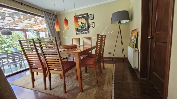 CasasChic presenta esta casa en venta en Condominio Borde andino, sector El Puntal – Peñalolén. Exclusiva propiedad de dos pisos con orientación NorOriente, excelente luminosidad natural y privilegiada vista a la cordillera, emplazada en uno de los sectores residenciales más consolidados y cotizados de Peñalolén. La propiedad cuenta con 159 m² construidos en un terreno de 530 m², ofreciendo una combinación equilibrada entre amplitud interior, funcionalidad y espacios exteriores ideales para la vida familiar y social. Destaca por su sólida distribución y ambientes cómodos, permitiendo adaptar fácilmente el programa según las necesidades familiares. Características: 4 dormitorios más dormitorio de servicio. Ventanas termopanel. Dormitorio principal en suite muy amplio con dos Walking Closet. Baño en suite separados, vanitorio, wc y ducha. Living y comedor de buen tamaño, con salida directa a terraza Amplia cocina con comedor diario Dormitorio y baño de servicio Logia independiente Exterior: Terraza Jardín formado Piscina Terreno amplio con buen aprovechamiento del espacio Equipamiento y entorno: Condominio con accesos controlados y seguridad Entorno residencial tranquilo y familiar Vista despejada a la cordillera Excelente conectividad hacia principales avenidas Cercano a colegios Dunalastair, Pumahue, Colegio Mayor y otros colegios del sector Cercano a centros comerciales, supermercados y servicios Gastos comunes aproximados: $180.000 Valor de venta: UF 11.900 Mt2 proporcionado por propietario Propiedad ideal para quienes buscan seguridad, buena conectividad, amplitud de terreno y calidad de vida en el sector precordillerano de Peñalolén. Contáctanos para más información y coordinar tu visita!