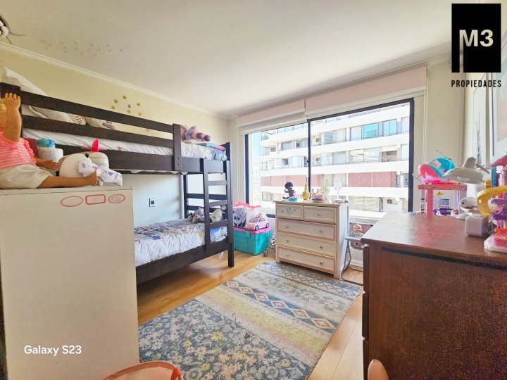 Se vende un excelente departamento ubicado en el corazón del barrio El Golf, en un séptimo piso con orientación norte. Su ubicación es privilegiada, en una calle tranquila, a solo pasos de la Plaza Perú y de la variada oferta gastronómica de primer nivel en la calle Isidora Goyenechea. Además, cuenta con una gran conectividad, con transporte público al alcance y el metro a tan solo 7 minutos caminando. - 140 m2 útiles / 160 m2 totales. - Piso flotante. - 2 departamentos por piso. - Hall de Acceso que nos invita a un amplio Living- Comedor, muy luminoso con acceso lateral a terraza cerrada con vidrios correderos que permiten disfrutar de este gran espacio tanto invierno como verano además de ser una barrera natural a los ruidos. - Sala de Estar que se puede cerrar y dejar como dormitorio adicional. - Gran Cocina equipada, con espacio para lavavajillas. Comedor de diario. Logia espaciosa con espacio para lavadora y secadora. - Dormitorio y baño de servicio. - Dormitorio principal en suite, baño con ventilación natural, salida a terraza. - Segundo dormitorio de buen tamaño con baño en el pasillo. - 2 estacionamientos y una bodega. - Gastos comunes, $350.000 - Contribuciones app. 600,000 trimestrales. El edificio cuenta con consejería 24/7 y estacionamientos de visita.