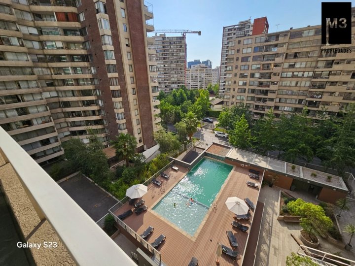 Ideal para Inversión! Ubicado en una de las zonas más cotizadas de la comuna de Las Condes, a solo pasos del metro Manquehue, este moderno edificio destaca por su inmejorable conectividad y entorno urbano consolidado. En sus alrededores se encuentran restaurantes, supermercados, colegios, jardines infantiles y una amplia oferta de servicios, lo que lo convierte en una excelente alternativa para quienes buscan comodidad, vida urbana y calidad de vida. El departamento se emplaza en el piso 7, y destaca por ser muy luminoso, gracias a su orientación privilegiada. Además, al tener vista hacia la piscina interior del condominio, se logra un ambiente tranquilo, sin ruidos de la calle y con una agradable vista despejada. Cuenta con 1 dormitorio y 1 baño, el cual se encuentra fuera del dormitorio, característica muy valorada ya que facilita su uso en caso de visitas. El dormitorio es cómodo, con buenas terminaciones y excelente iluminación natural. La cocina americana se encuentra completamente equipada, integrada al living-comedor, generando un espacio funcional y moderno. Uno de los principales atributos del departamento es su terraza de gran tamaño, muy amplia para una unidad de un dormitorio, ideal para disfrutar del aire libre, instalar mobiliario o generar un espacio de descanso adicional. El departamento presenta excelentes terminaciones en general, manteniendo una línea moderna y bien conservada. Incluye bodega. No cuenta con estacionamiento. El condominio cuenta con lavandería, sala multiuso, piscina, gimnasio, sauna y estacionamientos de visita. Se encuentra arrendado