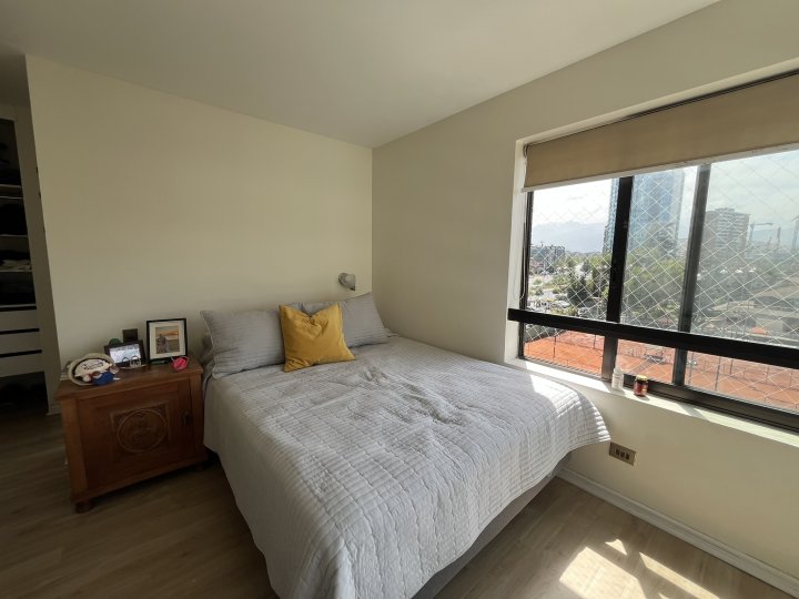 Amplio y luminoso departamento de 97 m². Ubicado en un consolidado sector residencial, a pasos de Avenida Apoquindo y cercano a estación de metro, con excelente conectividad y locomoción colectiva a pocos minutos caminando. En el entorno encontrarás supermercados, comercio, colegios, servicios y centros comerciales, en un barrio tranquilo y de alta demanda residencial. La propiedad cuenta con 4 dormitorios, destacando el principal en suite con baño privado. El living-comedor es de muy buen tamaño y ofrece una cómoda distribución con salida a una hermosa terraza con vista despejada hacia el oriente, ideal para disfrutar de la luz natural. El departamento dispone de cocina tradicional equipada con lavavajillas, horno eléctrico y encimera a gas, además de un práctico espacio de logia. El edificio cuenta con ascensores y conserjería 24/7. Incluye estacionamiento techado y bodega. Disponible desde el 1 de Abril. Arriendo: $1.400.000 GGCC: $150.000 ¡No dudes en contactarme para más información o para coordinar una visita!