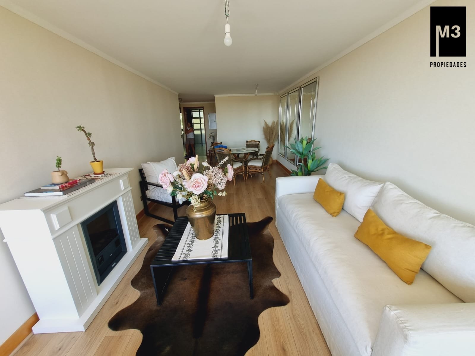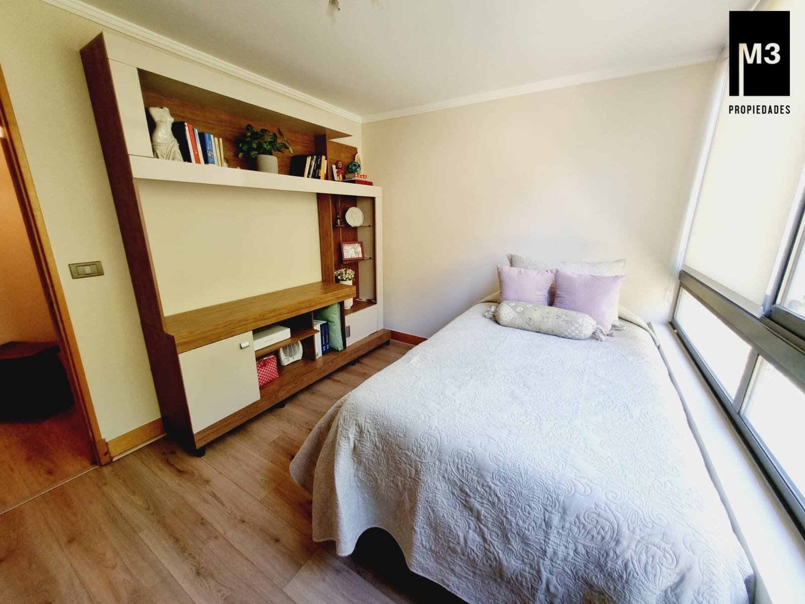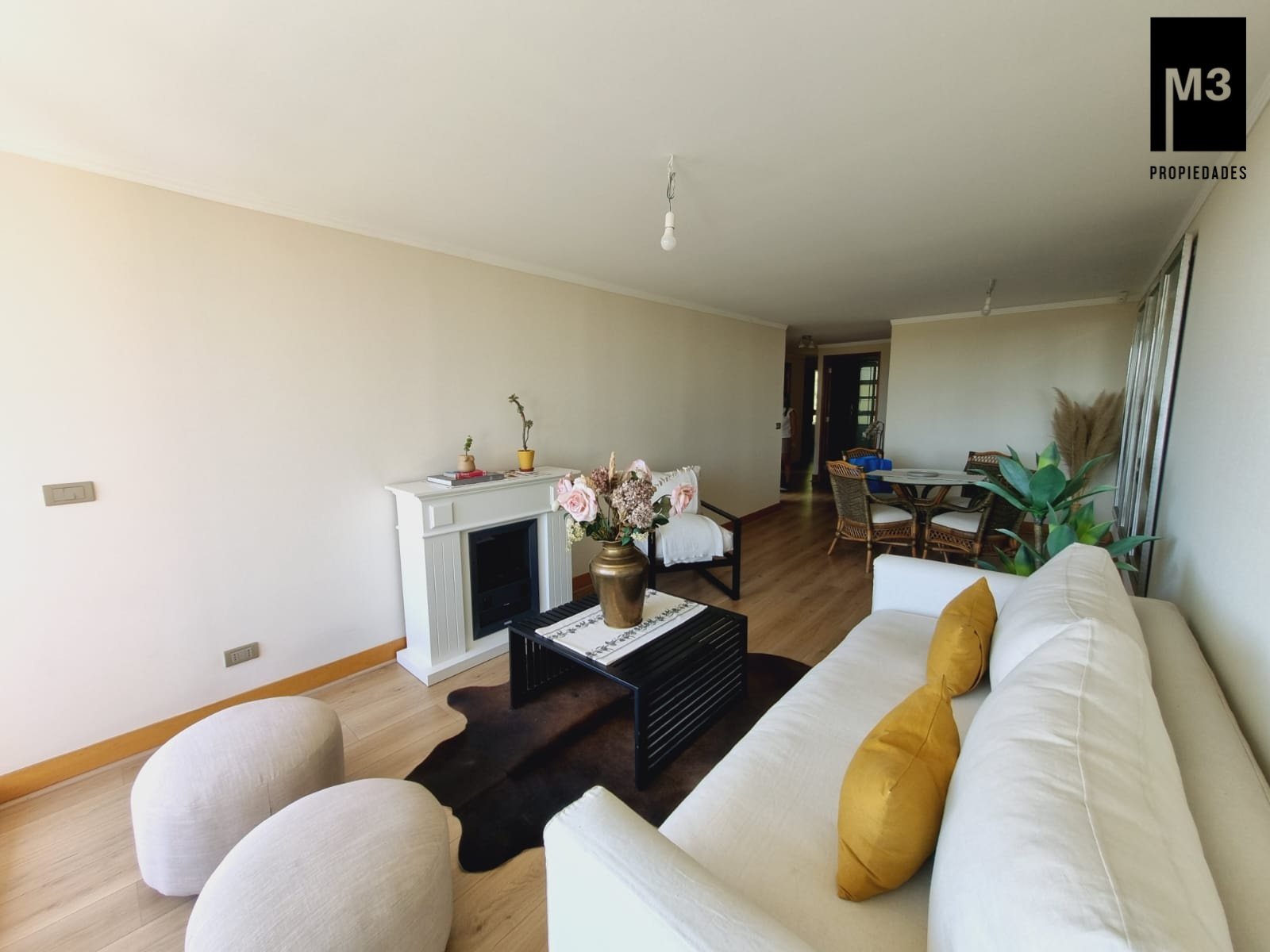 Se vende precioso departamento en condominio Jardines de Raúl Labbé, muy seguro, con agradables áreas verdes, lindas vistas y ambiente muy familiar y tranquilo. - 90 m2 útiles / 100 m2 totales. - Piso flotante en todo el depto. - Calefacción en base a radiadores eléctricos con acumuladores de calor y termostato. - Amplio hall de acceso, con baño de visitas. - Living-comedor con salida a amplia terraza que cruza el departamento. Una vista envidiable a la ciudad y montaña. - Cocina tradicional amoblada y equipada con cubierta de Silestone, encimera vitrocerámica, campana y horno eléctrico.. Logia exterior. - Dormitorio principal con amplios clósets, baño en suite y salida a terraza. - 2 dormitorios de buen tamaño con clóset, baño completo con tina y clóset adicional en pasillo. - 2 estacionamientos independientes más 2 amplias bodegas. - Gastos comunes app. 220,000 EQUIPAMIENTO EDIFICIO: Condominio de 2 torres de 5 pisos cada una, está equipado con salones multiuso, con terrazas exteriores, jardines, juegos infantiles, seguridad 24/7, controlado por cámaras y sistema perimetral microfónico, estacionamientos de visita, generador eléctrico.