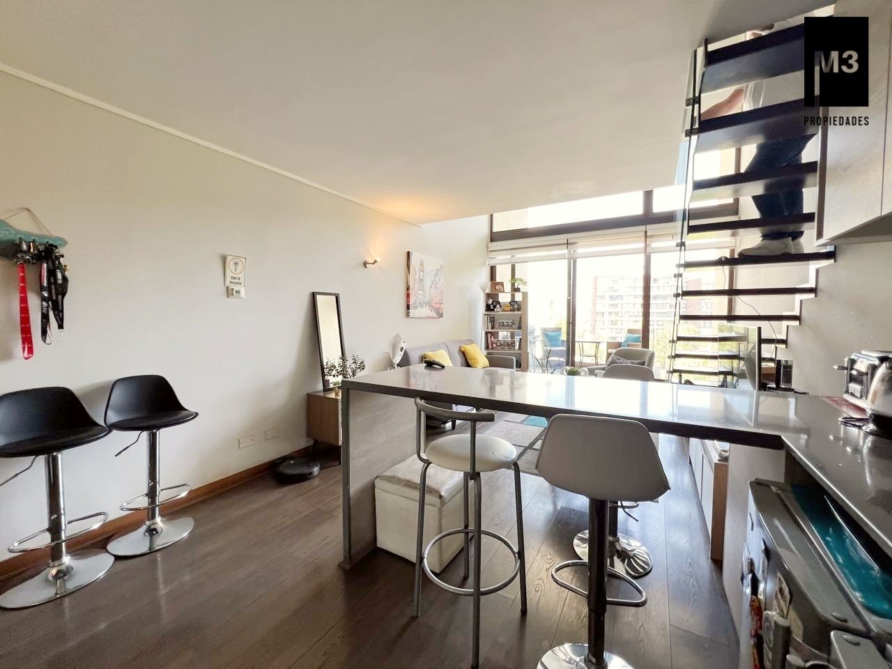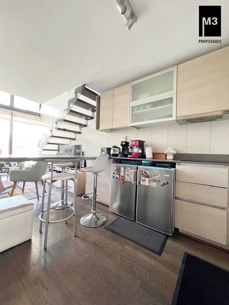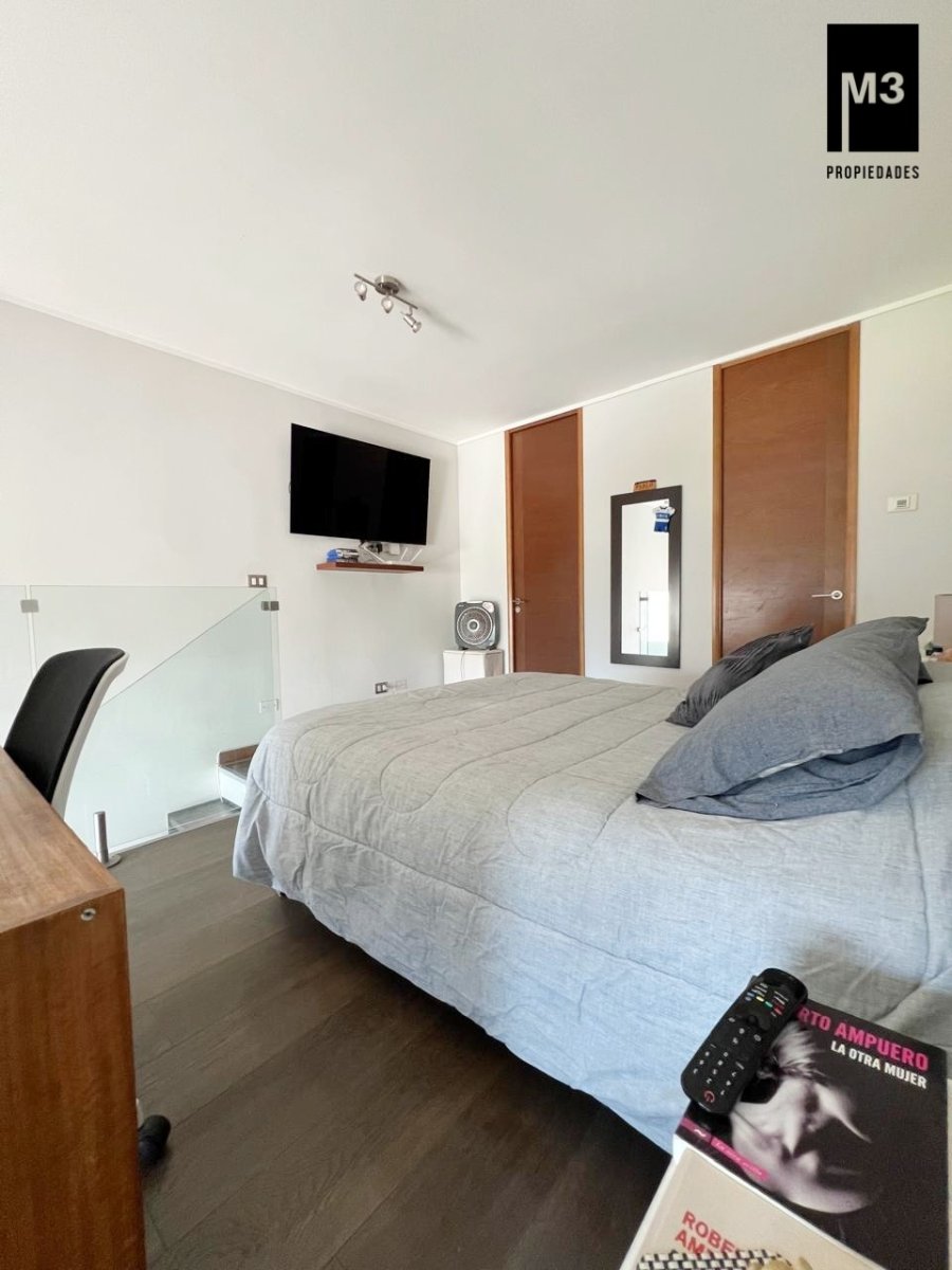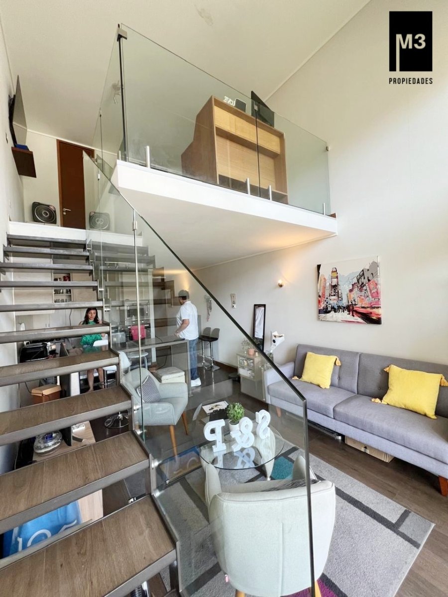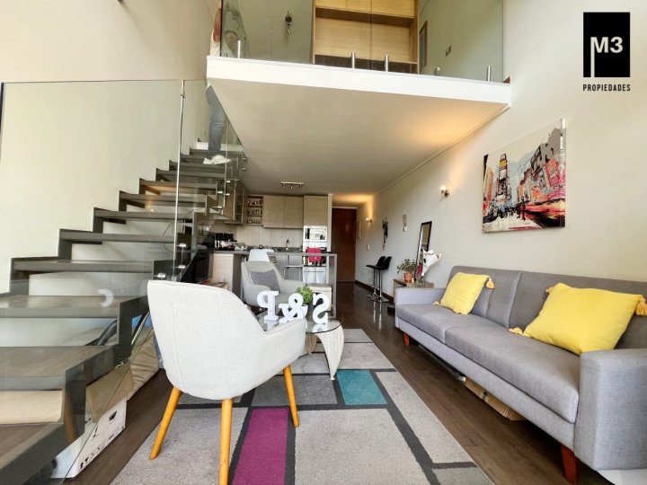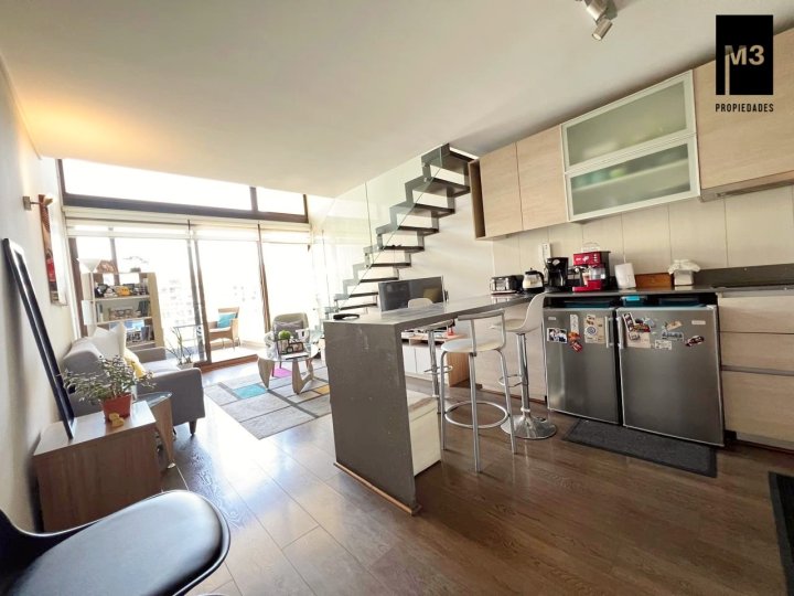 Se vende espectacular departamento LOFT ubicado en tranquilo sector residencial cerca del Av. Las Condes, a 5 minutos caminando del metro Hernando de Magallanes. Edificio con arquitectura de vanguardia con sólo 127 exclusivos departamentos de 1 y 2 dormitorios. - 60 M2 totales / 52 m2 útiles. - 1 Dormitorios / 2 Baños. Uno de ellos es de visita y se encuentra en primer piso. - Cocina americana equipada con campana, encimera, horno, refrigerador, freezer, microondas y lavavajillas - Calefacción por piso radiante eléctrico y termopanel. - Orientación Nor-poniente. - Placas solares para el agua caliente. - 1 Estacionamiento y bodega. - Se estiman gastos comunes app. 160,000. Edificio con conserjería 24 Horas, Piscina, quinchos en último piso, Lavandería, Sala Multiuso, Gimnasio, 2 Ascensores, Estacionamientos de visita.