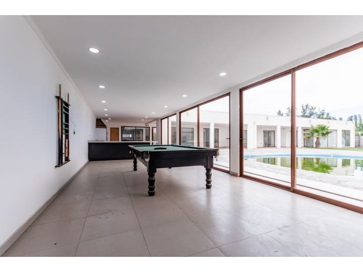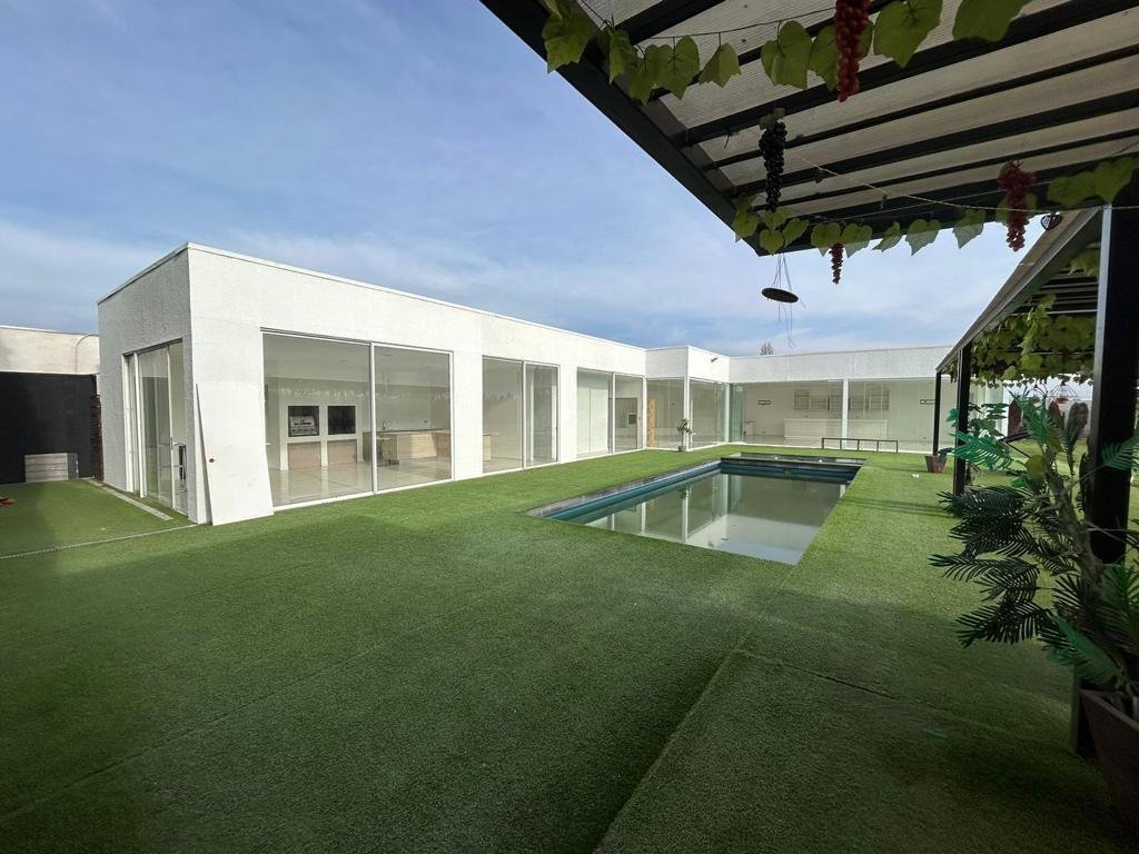 Corresponde a 1 Parcela de 5.000m2, con 2 casas totalmente independientes. Ubicada en Chicureo Poniente cercana a colegio #TREWHELAS, Montessori #PUCALAN, #RAYENMAUHUIDA, #KIMEN, con acceso a las principales autopistas como Los Libertadores y Ruta 5 ademas de Avenida Lo Pinto. Cercano a supermercados, centro comercial, bancos, colegios y clinicas#LASCONDES, #ALEMANA. Agua de Pozo Ambas propiedades ubicadas al interior de conjunto de 23 parcelas, con seguridad camaras, porton electrico, reduccion de velocidad para niños, Linda vista a la cordillera y con un entorno privilegiado cercano a Santiago solo a 20 minutos y 20 minutos de Las Condes - Vitacura. CASA 1: Primer Piso: 1 dormitorio en suite y con gimnasio Living comedor. con cocina concepto abierto. Gran bodega 2 Baños Segundo Piso: 2 Dormitorios ( 1 en suite) 2 Baños EXTERIOR: Quincho techado, GRAN sauna para relajacion spa con 2 baños, gran Bar - Hermoso salón de eventos con amplios ventanales que dejan ver hacia el exterior el paisaje verde con bella vegetacion , totalmente equipado, 2 baños. Hermoso Jardin, piscina de 14x7. Agua de Pozo, riego automático, porton electrico. CASA 2: Primer Piso: 8 Dormitorios ( 3 en suite) . Dormitorio principal con un gran walking closet y gran gimnasio interior. Living Comedor Cocina concepto abierto. 6 metros de altura. Segundo Piso: 3 Dormitorios ( 1 en suite ) Piscina, terraza, cierre de parcelas en excelente estado, gran quincho techado con baño y duchas. Cierre de parcela en excelente con ademas de vegetacion y un gran parque que rodea la propiedad El agua es a traves de pozo del la parcela, luz , gas es a traves de galones Metrajes aproximados dados por cliente VALOR:$700.000.000 VALOR AVALUO DEL SII PROPIEDAD SOBRE LOS 1000 MILLONES GRAN OPORTUNIDAD!!