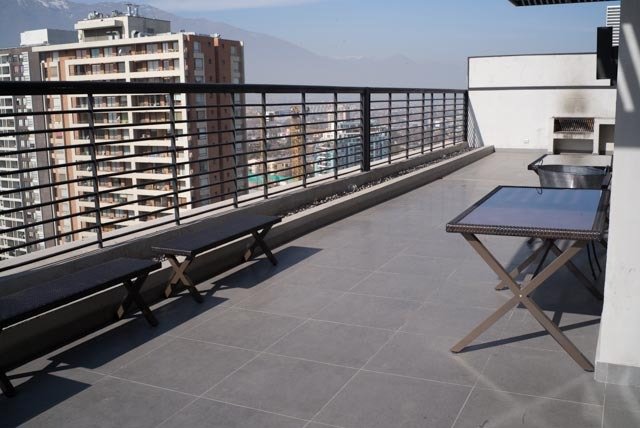 Se vende departamento ubicado en un piso 15, con excelentes vistas. Son 42 metros útiles, que se distribuyen en cocina estilo americana, unida al living con salida a la terraza de 5 m2, hermosa vista despejada. Dormitorio principal en suite, el baño con ventana, dando ventilación y luminosidad natural. El segundo dormitorio con closet. El edificio se encuentra a pasos del Metro Villa Frei, muy cerca del Mall Egaña, sector residencial. El edificio cuenta con amenities como piscina en azotea, quinchos, lavandería, gimnasio, espacios de esparcimiento, estacionamientos de visita, conserjería 24×7. Incluye 1 estacionamiento Año de construcción 2013 Gastos comunes $100.000 Contribuciones $32.000