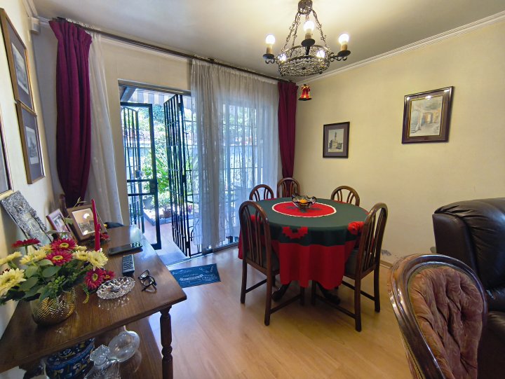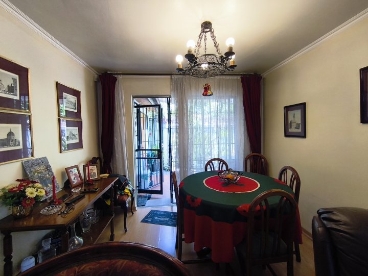 A pasos del metro Simón Bolívar, se encuentra este pasaje de 14 casas, sector muy familiar. La casa se distribuye en dos plantas, con 3 dormitorios, 2 baños, cocina y comedor integrado con el living. Adelante espacio para estacionar un auto, patio con jardín trasero. La construcción es del año 1983. Gastos comunes $5.000