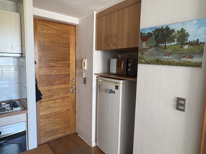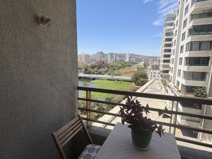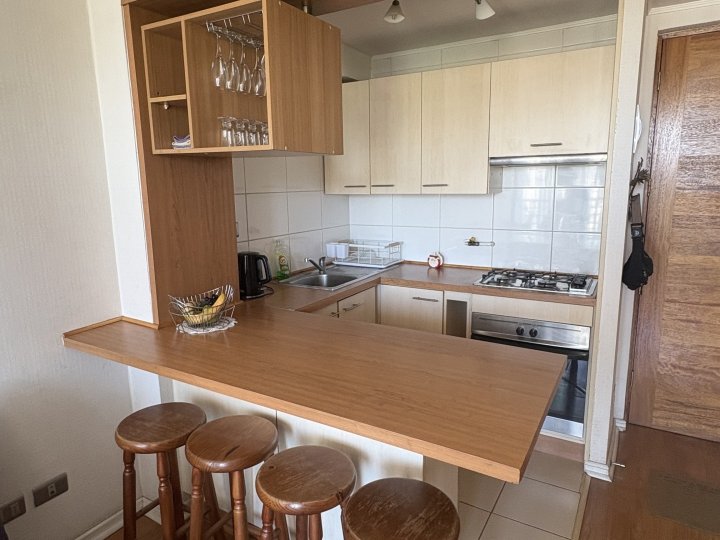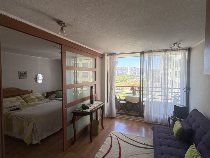 Vicenza Agente Inmobiliario arrienda cómodo y luminoso departamento ideal para estudiantes, ubicado en el centro de Viña del Mar, calle Traslaviña, Edificio Blue. Excelente ubicación a pasos de universidades, playa, bancos, centros comerciales y con locomoción a la puerta hacia Viña del Mar y Valparaíso. El departamento cuenta con un dormitorio amplio equipado con cama de dos plazas y escritorio, baño espacioso, living con futón, cocina completamente equipada con encimera a gas y horno eléctrico empotrado, además de una terraza con mesa para disfrutar la vista. Es un espacio soleado, funcional y listo para habitar. Arriendo disponible desde marzo a diciembre, pensado especialmente para el periodo académico. Valor mensual de 450.000 pesos sin gastos comunes incluidos (valor 100.000 pesos )