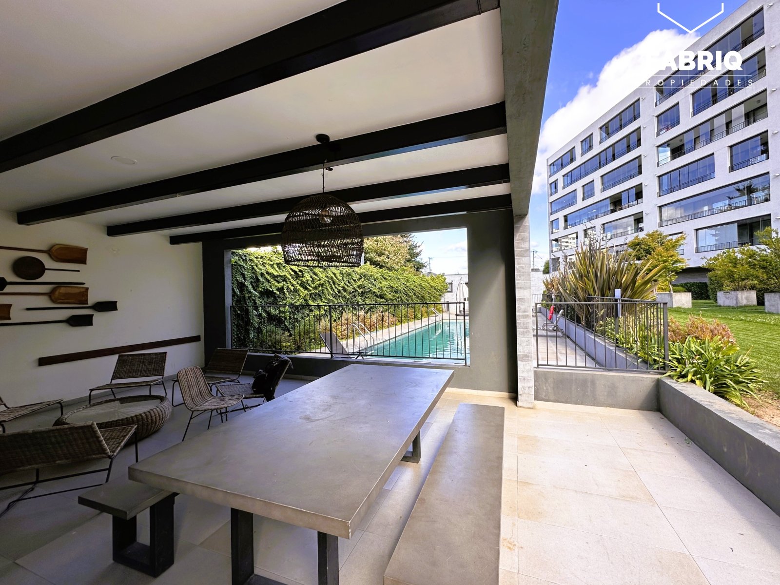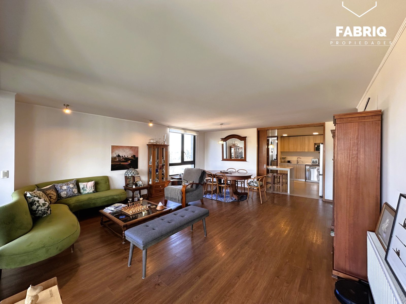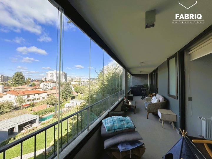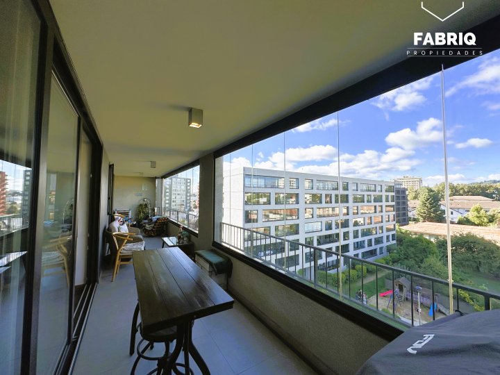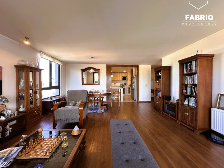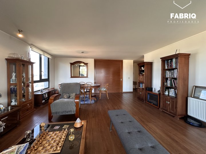 En venta Amplio y luminoso departamento de aproximadamente 155m², ubicado en espectacular condominio Parque Estébanez, en uno de los mejores sectores de Temuco. A pasos de Colegio Alemán, Clínica Alemana, Avenida Alemania, supermercados y mall. Entorno residencial consolidado y de alta plusvalía. Gastos comunes de $170 VALOR DE VENTA: 10.500 UF /$418.000.000.- Distribución: • Hall de acceso • Baño de visitas • Gran living comedor • Amplia terraza, con salida desde el living y el dormitorio principal • Cocina integrada, e independiente con mampara de madera. • Amplia Logia • Dormitorio principal con baño en suite y walking clóset • Dos amplios dormitorios • Tres baños (completos) *(originalmente con dormitorio de servicio, se puede reintegrar) Incluye: • Dos estacionamientos subterráneos • Una bodega • Luminarias • Cortinas y rollers • Cierres retractiles en terraza Áreas comunes del condominio: • Piscina • Gimnasio • Salón gourmet • 3 Quinchos full equipados • Sala de juegos infantil • Conserjería 24/7 Vale la pena visitar, para más información déjanos un mensaje y te contactaremos. Te asesoramos con ayuda financiera y legal. VENDE FABRIQ PROPIEDADES