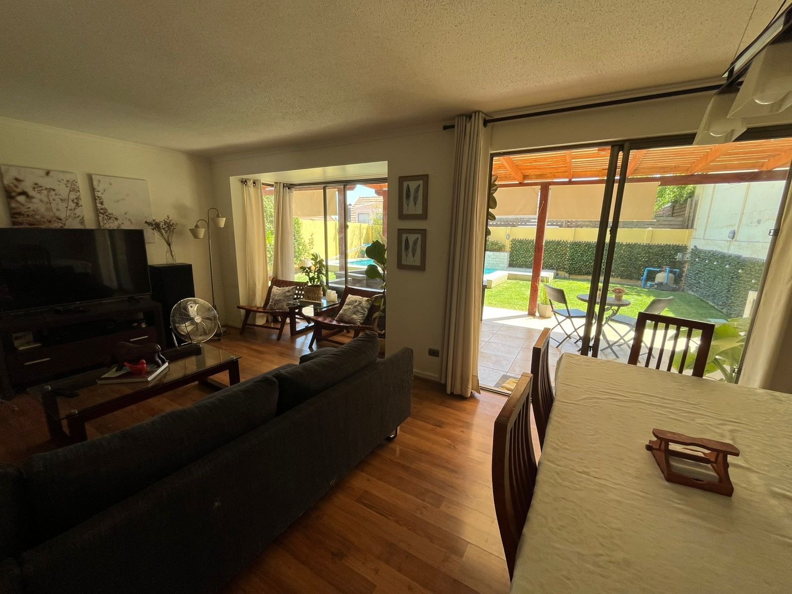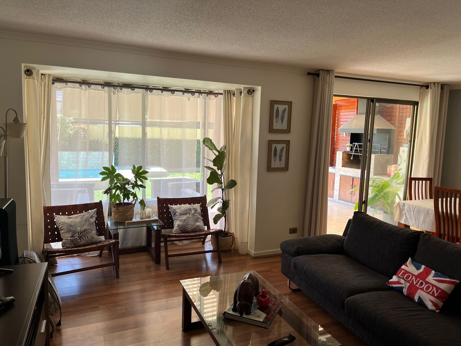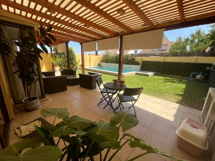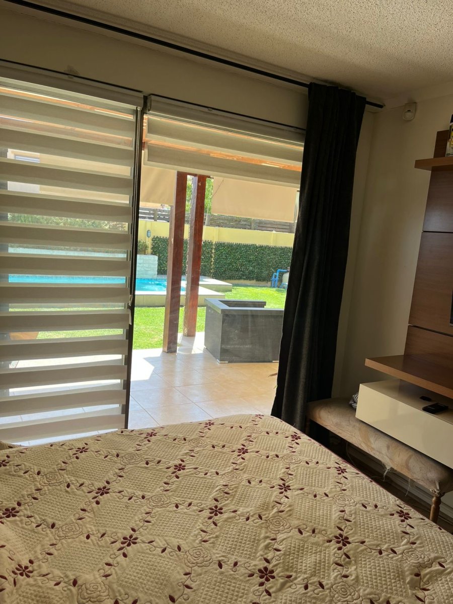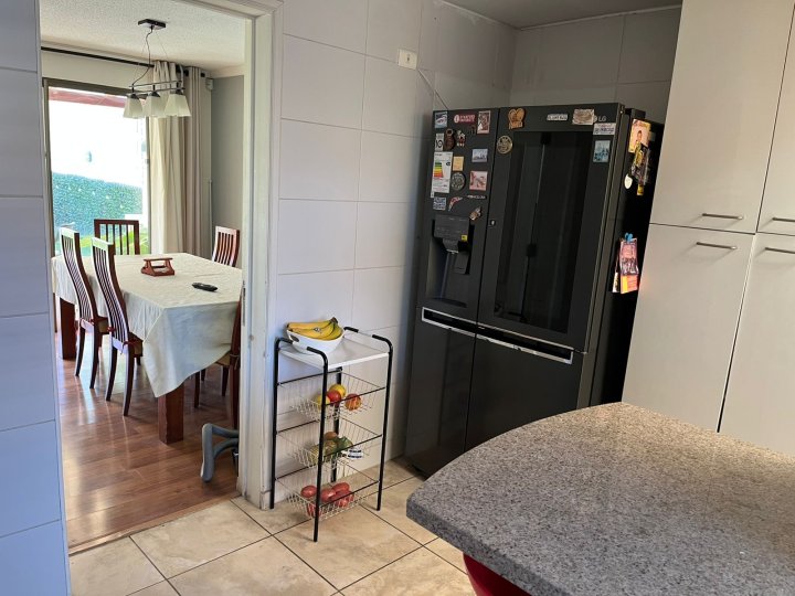 Se arrienda casa en barrio con portón , agua de Vega , 3 dormitorios. Principal con aire acondicionado y home office Salita de estar 3 baños Living y comedor Cocina loggia Estacionamiento hasta 4 vehículos Piscina con cascada Quincho y terraza techada Riego automático 280 mts Condominio cerrado con control remoto , cercano a colegio, gimnasio, jardines infantiles , no dejes de visitar Arriendo 1.600.000 se pide 1.5 mes de garantía Acreditar 3 veces la renta 50% corretaje + honorarios