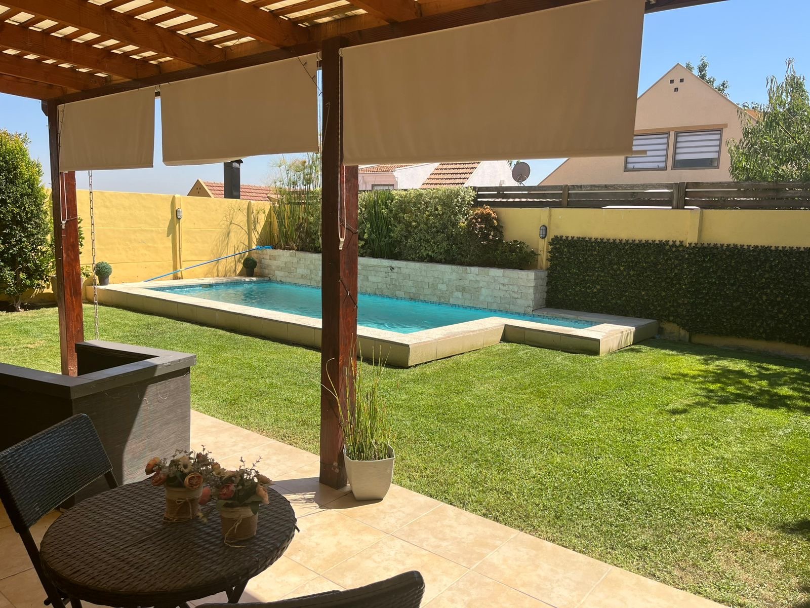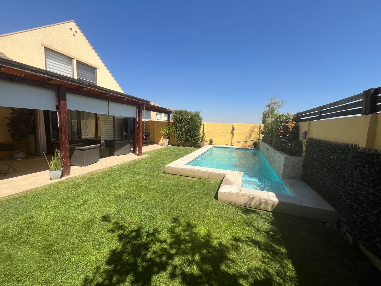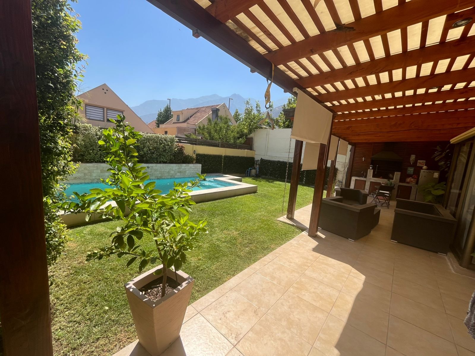 Se arrienda casa en barrio con portón , agua de Vega , 3 dormitorios. Principal con aire acondicionado y home office Salita de estar 3 baños Living y comedor Cocina loggia Estacionamiento hasta 4 vehículos Piscina con cascada Quincho y terraza techada Riego automático 280 mts Condominio cerrado con control remoto , cercano a colegio, gimnasio, jardines infantiles , no dejes de visitar Arriendo 1.600.000 se pide 1.5 mes de garantía Acreditar 3 veces la renta 50% corretaje + honorarios