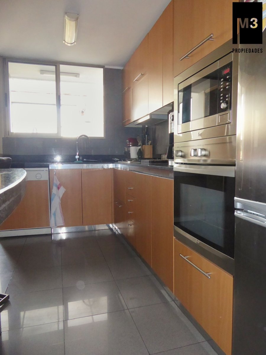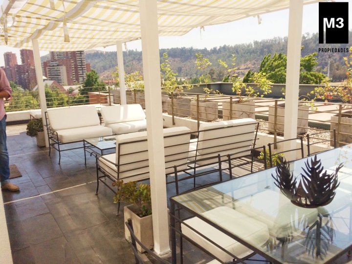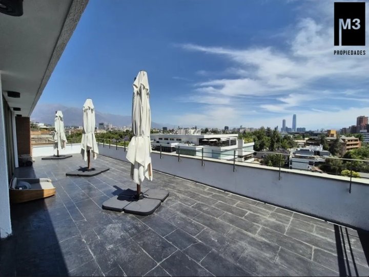 Se arriendo precioso y amplio Penthouse en calle tranquila con vista despejada, a pasos de Av. Nueva Costanera en donde se encuentran los restaurantes y tiendas más importantes de Santiago. - 233 m2 totales / 188 m2 útiles. - Año de construcción: 2007. - Piso Flotante de alto tráfico. - Piedra Pizarra en terrazas. - Calefacción por losa radiante. - Cortinas e iluminación instalada. - Orientación Nor-poniente con una vista despejada y envidiable. - Hall de entrada. - Living y comedor con salida a 2 grandes terrazas norte y poniente. Una de ellas acondicionada con mobiliario. - Sala Estar en pasillo que puede ser habilitada como dormitorio. - Walking Closet en pasillo. - Dormitorio principal en suite con salida a terraza privada y conectada a cocina. - Dormitorio 2 con salida a terraza. - Baño en pasillo. - Cocina con comedor de diario, con cubierta de granito, encimera a gas, horno, microondas y campana eléctrica, harto mobiliario. - Logia espaciosa independiente. - Pieza y baño de servicio de muy buen tamaño. - 2 estacionamientos independientes y 1 bodega de 2x3. - Gastos comunes app. 350,000 en verano y 500,000 en invierno. EQUIPAMIENTO DEL EDIFICIO: Conserjería 24/7 horas, cámaras de seguridad, 15 estacionamientos de visitas, Piscina de buen tamaño y 2 salas multiuso.