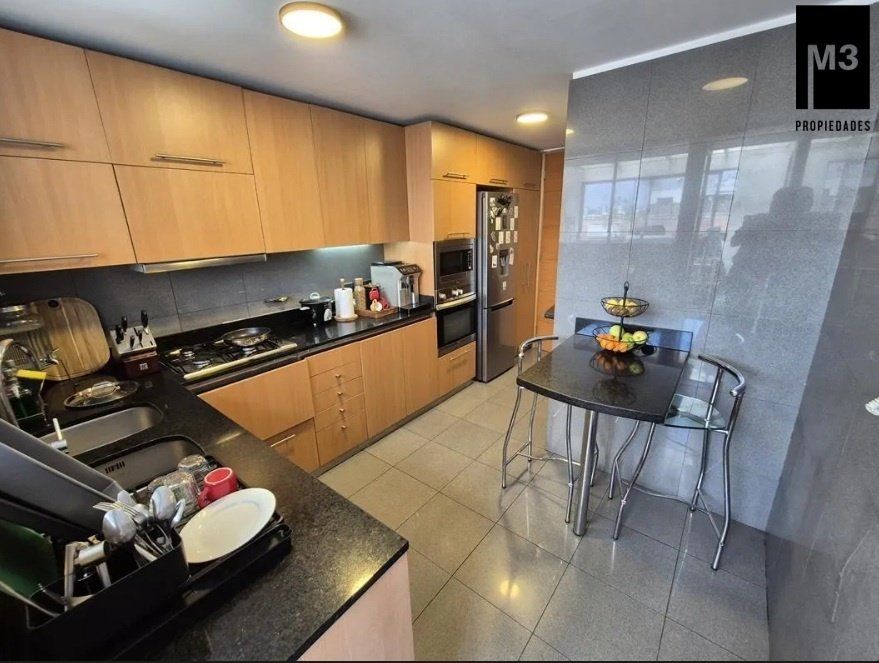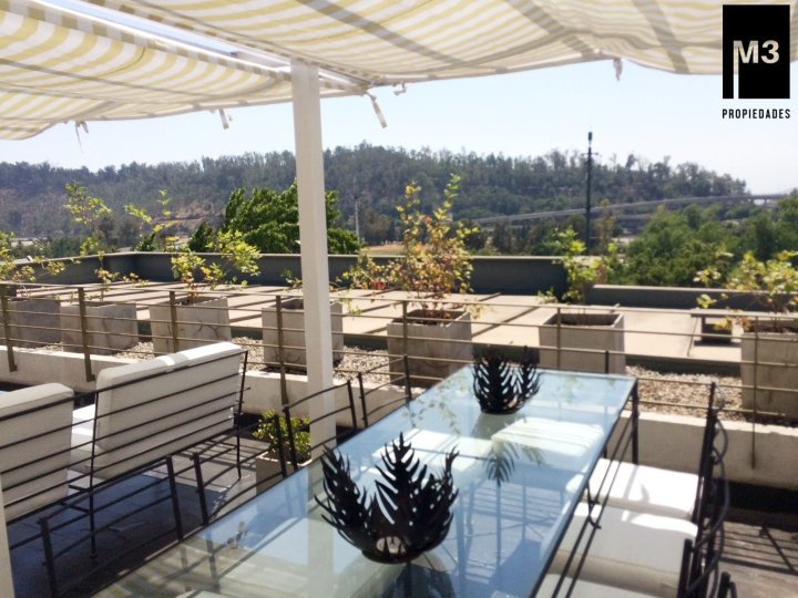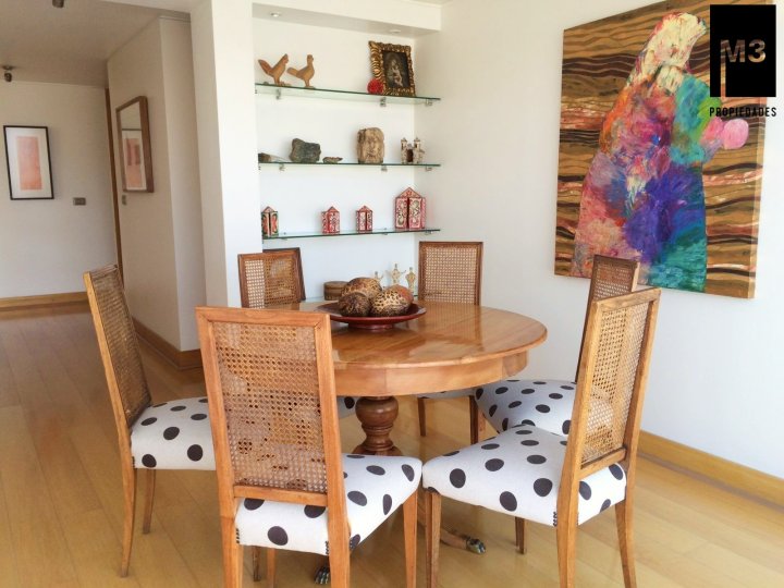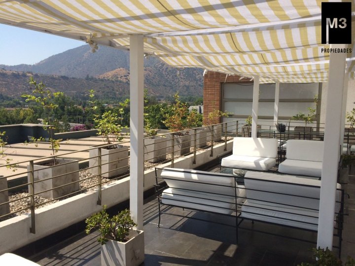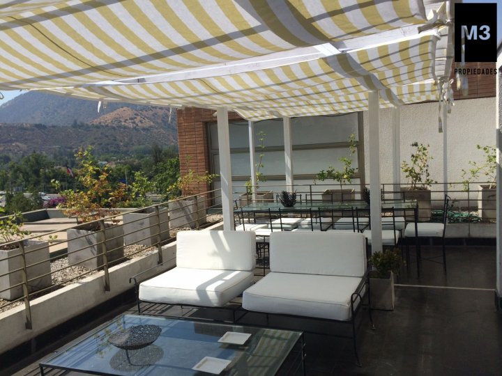 Se vende precioso y amplio Penthouse en calle tranquila con vista despejada, a pasos de Av. Nueva Costanera en donde se encuentran los restaurantes y tiendas más importantes de Santiago. - 233 m2 totales / 188 m2 útiles. - Año de construcción: 2007. - Piso Flotante de alto tráfico. - Piedra Pizarra en terrazas. - Calefacción por losa radiante. - Cortinas e iluminación instalada. - Orientación Nor-poniente con una vista despejada y envidiable. - Hall de entrada. - Living y comedor con salida a 2 grandes terrazas norte y poniente. Una de ellas acondicionada con mobiliario. - Sala Estar en pasillo que puede ser habilitada como dormitorio. - Walking Closet en pasillo. - Dormitorio principal en suite con salida a terraza privada y conectada a cocina. - Dormitorio 2 con salida a terraza. - Baño en pasillo. - Cocina con comedor de diario, con cubierta de granito, encimera a gas, horno, microondas y campana eléctrica, harto mobiliario. - Logia espaciosa independiente. - Pieza y baño de servicio de muy buen tamaño. - 2 estacionamientos independientes y 1 bodega de 2x3. - Gastos comunes app. 350,000 en verano y 500,000 en invierno. EQUIPAMIENTO DEL EDIFICIO: Conserjería 24/7 horas, cámaras de seguridad, 15 estacionamientos de visitas, Piscina de buen tamaño y 2 salas multiuso.