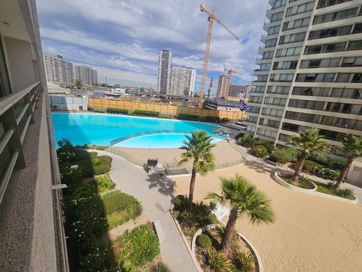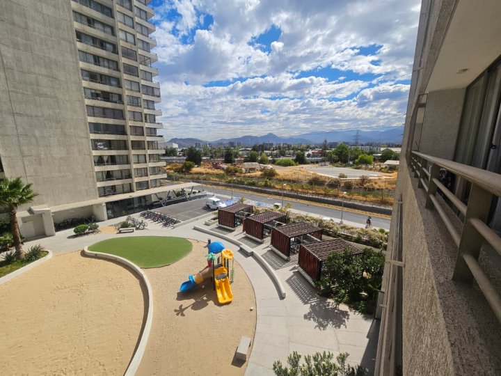 Amplio y luminoso departamento ubicado en Av. Vicuña Mackenna 3756, torre F, piso 5. Cuenta con 2 dormitorios y 2 baños en suite, ideal para quienes buscan comodidad, privacidad y buena distribución. La propiedad dispone de cocina americana integrada, un living espacioso y un balcón de gran extensión con ventanales, que aporta excelente luminosidad y una vista abierta muy agradable. Incluye estacionamiento cercano al ascensor, además de estacionamientos de visitas dentro del condominio. Uno de los grandes atributos de este proyecto es su exclusiva laguna navegable de 7.000 m², rodeada de áreas verdes y espacios pensados para disfrutar: piscina con playa de arena natural, muelle para embarcaciones sin motor, quinchos, gimnasio, juegos infantiles y salón multiuso. Ubicación estratégica frente a Estación Carlos Valdovinos, con excelente conectividad y cercanía a supermercados, servicios, universidades como UTFSM y PUC, e institutos como Inacap y Santo Tomás. A pocos minutos de Mall Plaza Vespucio y Cenco Florida. El condominio cuenta con seguridad 24 horas, doble control de acceso (condominio y torre), amplios accesos vehiculares y peatonales,