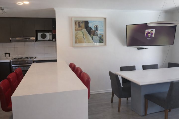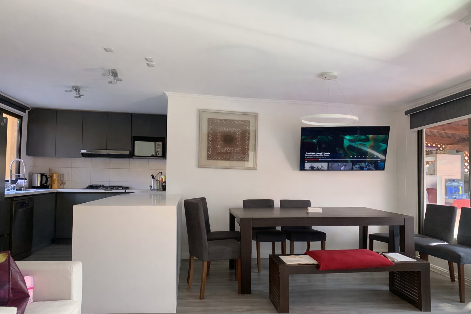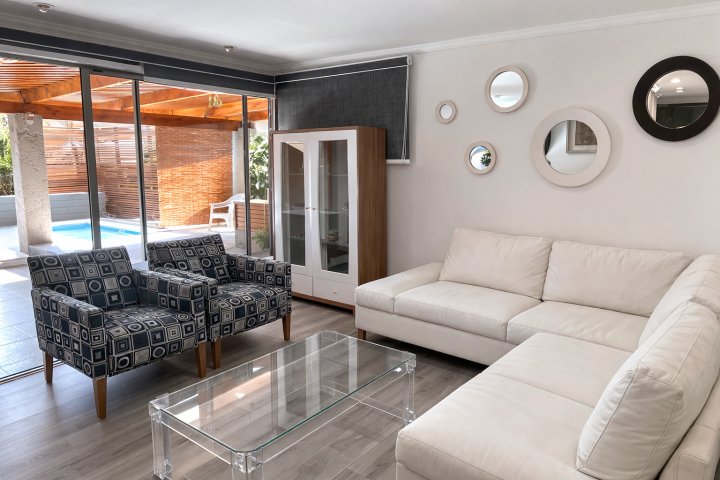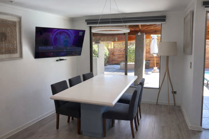 Casa remodelada de 4 dormitorios en condominio cerrado, con piscina climatizada Ubicada en el sector El Solar con Consistorial, en un entorno residencial consolidado, cercano a colegios, strip centers, supermercados y centros médicos como Clínica Las Condes e Integramédica. Excelente conectividad, a solo 5 minutos del metro. La propiedad se distribuye de la siguiente manera: Primer piso: Hall de acceso Moderna cocina integrada, completamente equipada con lavavajillas, encimera y horno Cocina conectada a zona de lavadero con salida directa a la terraza Cubiertas y gran isla de Silestone blanco, diseñada como comedor diario para 6 personas, integrando cocina, comedor y living Amplio living-comedor con salida a terraza Terraza con quincho y piscina equipada con bomba de calor, ideal para uso durante todo el año Baño de visitas Dormitorio principal en suite, con closets y espacio para escritorio, con salida directa a la terraza (incluye aire acondicionado) Bodega exterior Cortinas roller incluidas en living y sector de lavadero Piso vinílico gris claro en toda la propiedad Estacionamiento para 2 vehículos Segundo piso: Tres dormitorios de buen tamaño Sala de estar con salida a balcón Baño completo Dormitorio 3 con aire acondicionado DISPONIBILIDAD A PARTIR 01 MAYO 2026