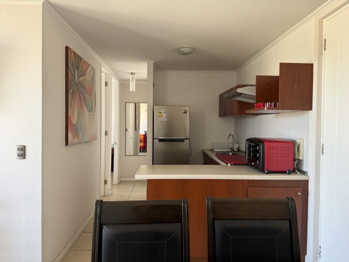 Venta de departamento amoblado, sector Peñuelas Norte, ubicado en piso 6 vista oriente. Dispone de living comedor, grata terraza, dos dormitorios cada uno con closet, un baño, y cocina integrada y equipada con encimera vitrocerámica, campana y horno eléctrico. Incluye un estacionamiento y una bodega. Todo lo que necesitas, ¡ya amoblado y listo para habitar! 🛋️🍽️ Los gastos comunes son de $ 95.000.- ¡Descubre tu nuevo hogar en La Serena! 🌊 Este acogedor y moderno departamento está ubicado a solo pasos de la playa, en el sector Peñuelas, Casino Enjoy. Una excelente oportunidad de inversión con alta rentabilidad en la temporada de verano. 🌞 La ubicación permite guardar el auto y aprovechar agradables camintas. El condominio también cuenta con piscina para disfrutar de los días soleados.🏊♂️, conserjería, quinchos, áreas verdes, senderos, juegos infantiles, salón multiuso, lavandería, estacionamientos de visita.