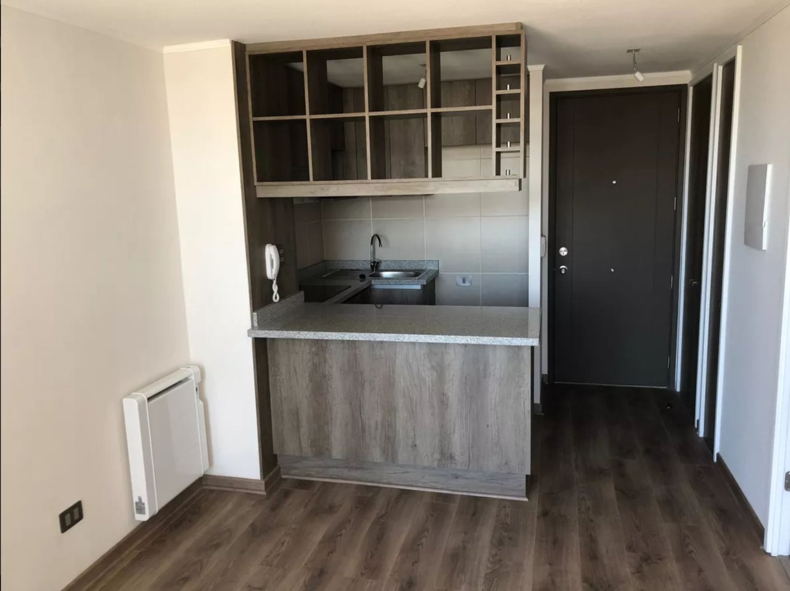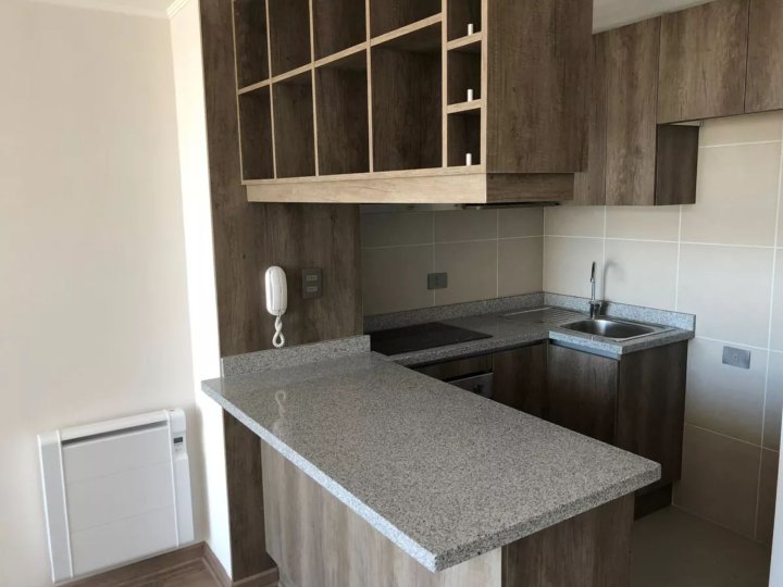 Piso 9 Departamento de 1 dormitorio independiente, con cocina integrada a la sala del living. La cocina completamente amoblada, con mesada de granito. Piso flotante en todo el departamento y cerámica en pareas húmedas. FOTOS REFERENCIALES Gastos comunes $55.000, adicional el agua caliente por caldera. Opcional - Precio de estacionamiento UF 400 Fotos referenciales