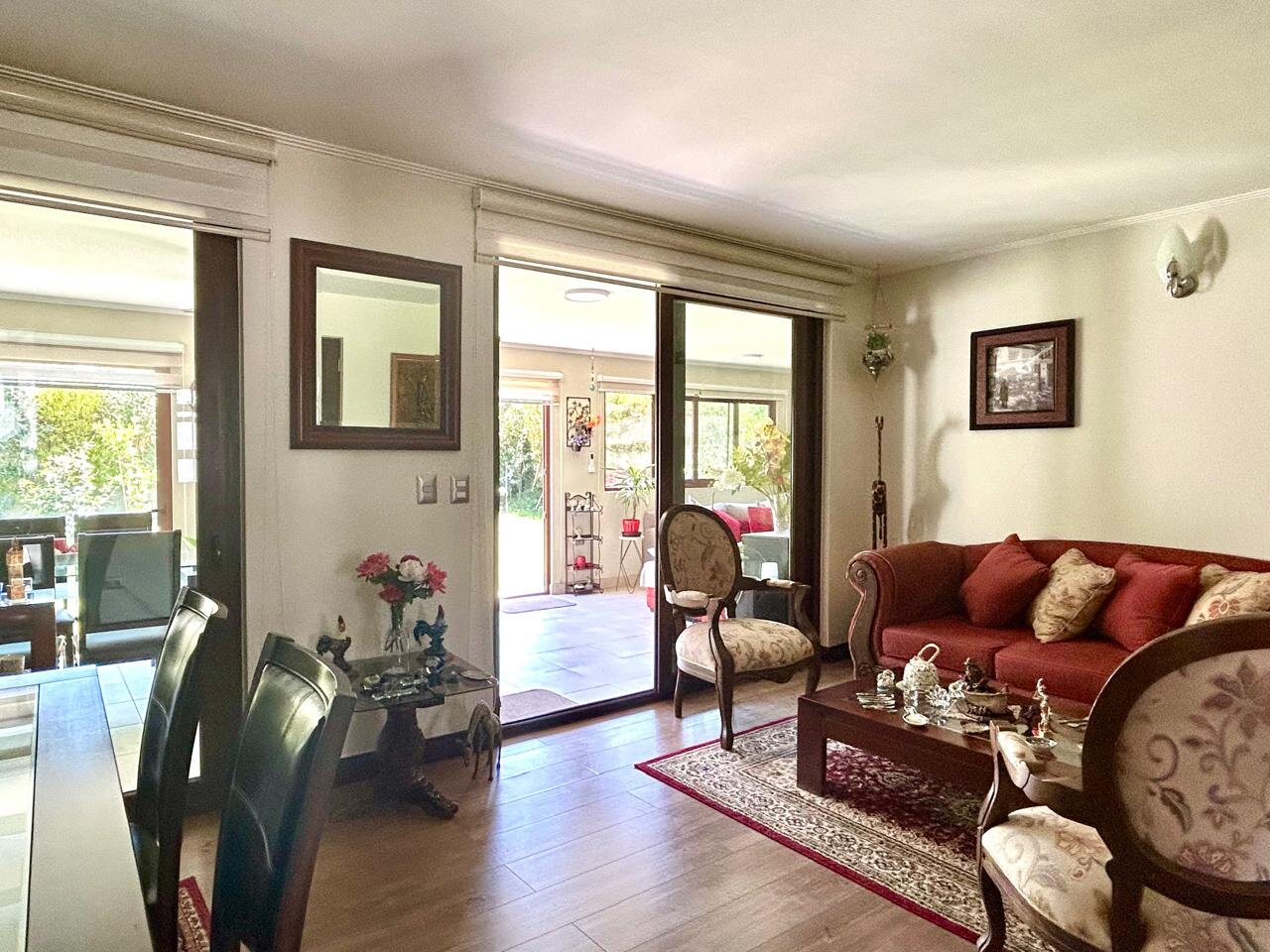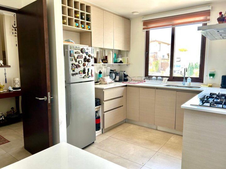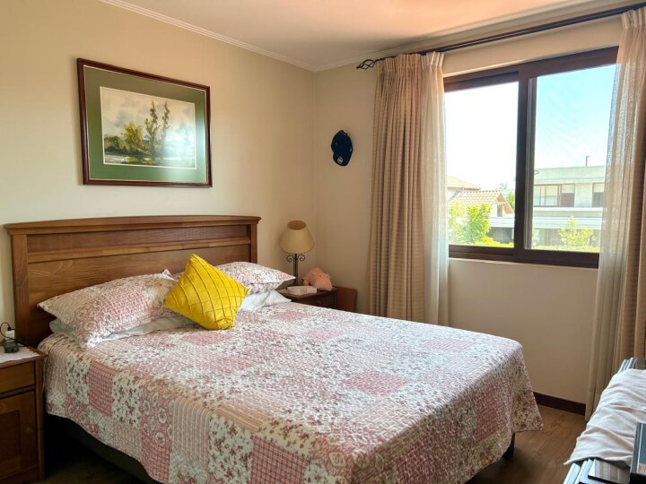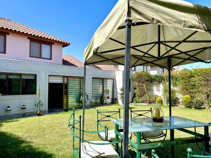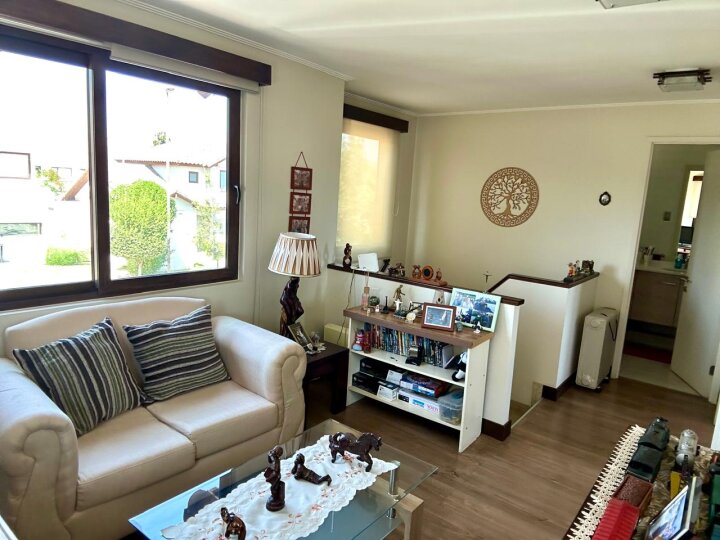 Hermosa, amplia y cómoda casa modelo Chilena, ubicada en Condominio Taiquen, en Av. Santa Filomena, cercana a Strip Center, autopista Los Libertadores y Colegio Highlands. 1° PISO: Hall de entrada, living comedor, cocina tradicional con comedor de diario, logia, baño de visitas, bodega + Sala de estar de 40 mt2 (ampliación) con salida a patio trasero. Dormitorio principal en suite, con walk in closet y baño completo con ventilación natural. 2° PISO: Sala de estar, 2 amplios dormitorios de buen tamaño con closet y baño completo con ventilación natural. Casa con piso de porcelanato, ventanas y ventanales de termo paneles, calefón y caldera. Aire acondicionado en sala de estar. Antejardín con estacionamientos descubiertos para 4 vehículos. Contribuciones $180.000.- x cuota. Fastos comunes $100.000.- Aprox. PROPIEDAD SIN DEUDA HIPOTECARIA. Condominio con acceso controlado 24/7, plaza interior con juegos para niños y estacionamientos para visitas. NO DEJE DE VISITAR..!!