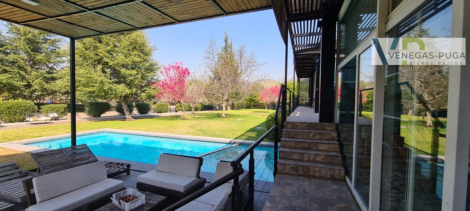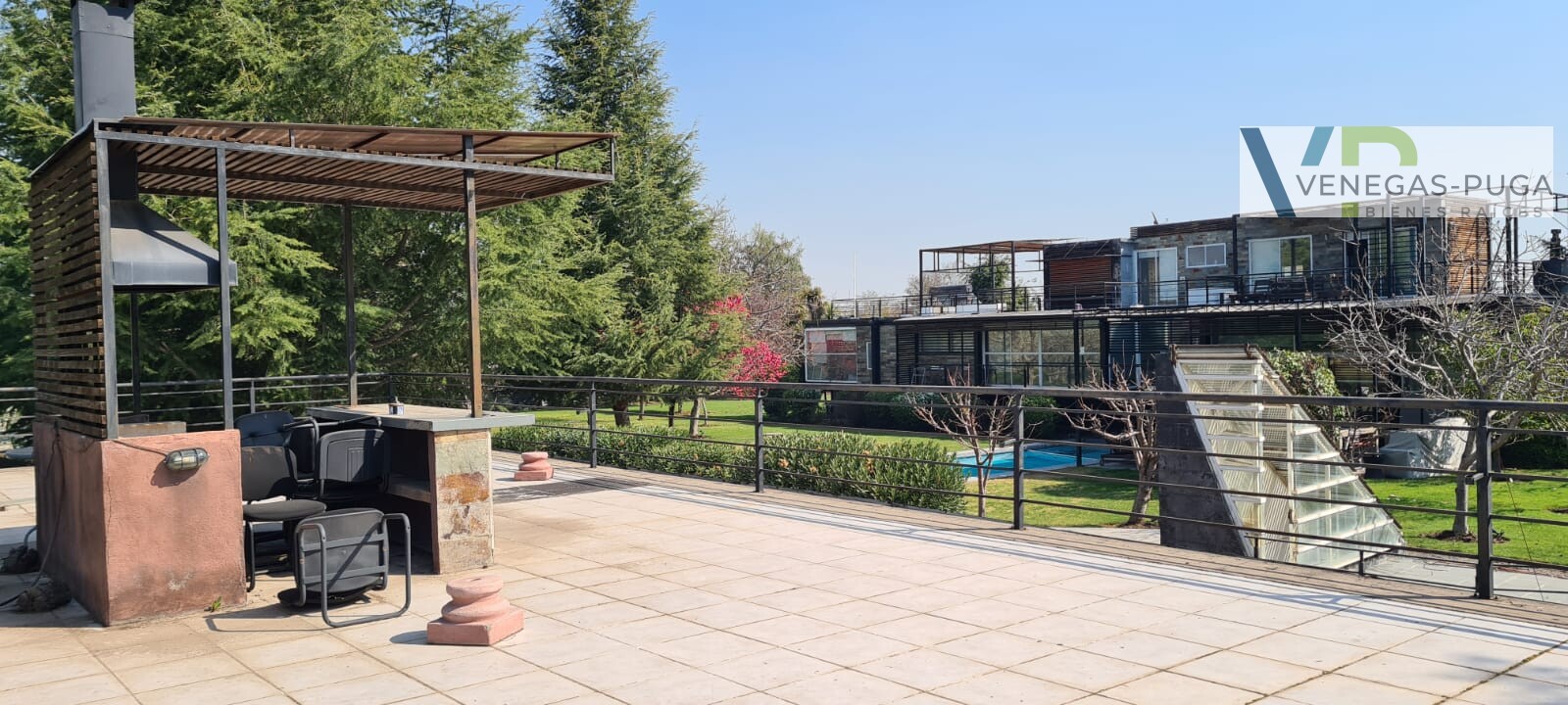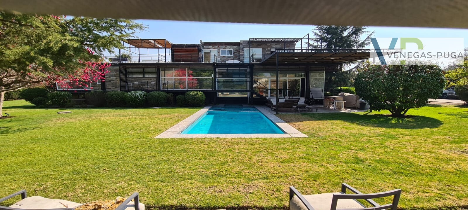 Vive en unos de los mejores y exclusivos condominios de Chicureo, seguridad las 24 hrs. del día, cerca de colegios, excelente conectividad. Las mejores canchas de golf. Casa de estilo moderno, excelente ubicación cerca del club de golf !!! Primer piso: Hall de distribución, baño visita, living y comedor juntos, cocina amoblada, sala de estar o estudio con escalera caracol que conecta al segundo piso. Dormitorio principal en suite, walking closet, amplio dormitorio segundario. Segundo piso: En este piso se encuentra un dormitorio muy amplio (originalmente eran dos dormitorios) baño. Y una gran terraza que rodea toda la casa. Subterráneo: Se encuentra la lavandería, dormitorio de servicio y una sala que podría usarse como gimnasio u otro dormitorio. Quincho: Este recinto independiente a la casa se encuentra una construcción de tres niveles, se accede nivel de suelo y va descendiendo los niveles. En el cual se encuentra una gran sala de juegos con un bar y sala de estar, área de dormitorio con un baño completo. tiene alrededor de 100 m2. En la azotea tiene la parrilla con campaña y muele en obra. Jardín: Precioso jardín formado por macizos arbustivos, arboles frutales, área de huerta, piscina temperada. Otros: • Área para gimnasio, amplia bodega. • Estacionamientos. • Calefacción por radiadores • Ventanales termopanel • Pisos piedra pizarra y flotante.