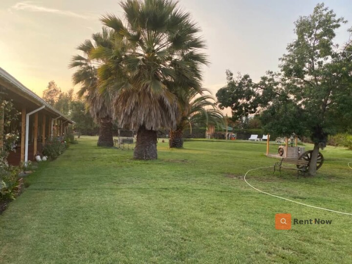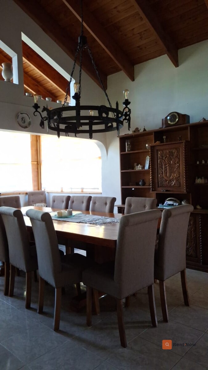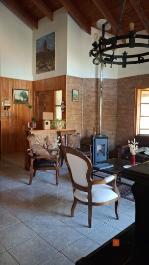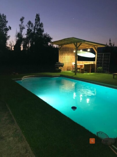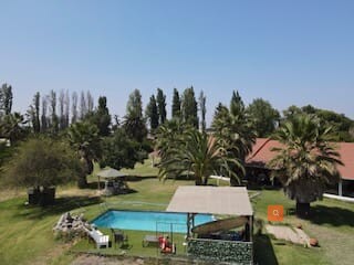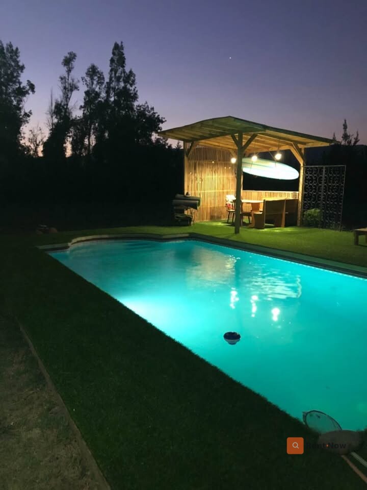 Espectacular parcela de 7.800 m² con aproximadamente 310 m² construidos, conformada por dos casas independientes bajo un techó común, separadas por estacionamiento cubierto. Ubicación privilegiada a solo 30 minutos de Santiago, en sector tranquilo y familiar con locomoción colectiva en la puerta (buses, taxis y colectivos). Propiedad exenta de contribuciones y con derechos de agua propios. Casa Principal 1 dormitorio en suite con baño privado 3 dormitorios adicionales + 1 baño Living - comedor amplio Bar Segundo piso / altillo Cocina independiente Lavadero Casa Secundaria (entrada independiente) 2 dormitorios 1 baño Living - comedor - cocina estilo americano Equipamiento y características destacadas Piscina con iluminación nocturna y quincho Riego automático en toda la parcela Calefacción a pellet + aire acondicionado Generador eléctrico de respaldo Bodega Estacionamiento techado para 4+ vehículos Jardines con palmeras y amplias áreas verdes Bar rústico totalmente equipado Locomoción colectiva en la puerta