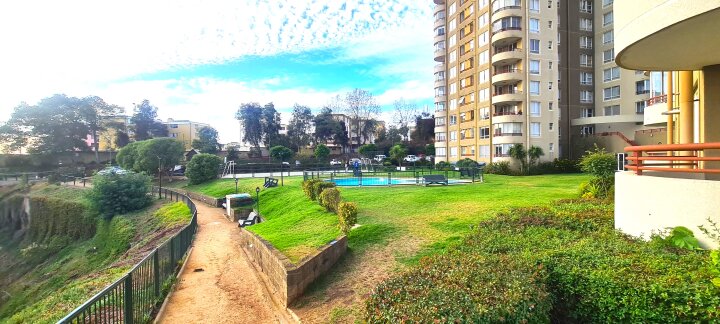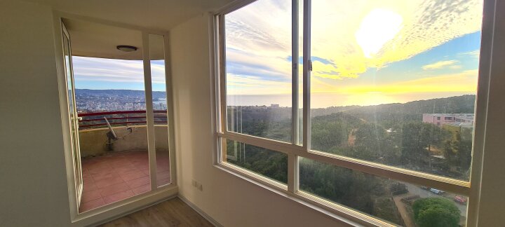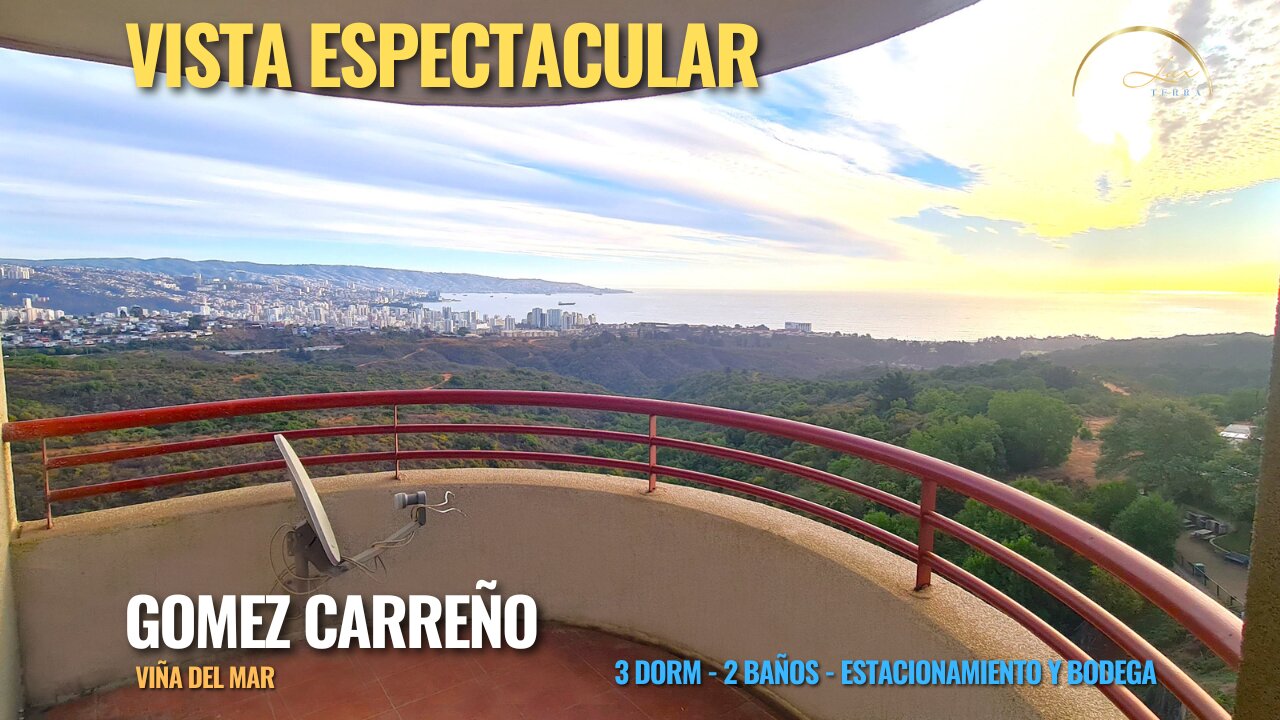 Espectacular vista a Viña | Seguridad | Condominio. UBICADO A 11 minutos del centro de Viña del mar, a media cuadra de Carabineros, plaza mirador, colegio, piscina municipal, bomberos, farmacias cruz verde, panaderías, botillería y comercio en general. Tottus, Homecenter y Copec a 5 cuadras. Movilización a una cuadra. EL DEPARTAMENTO Encontramos un iluminado living comedor de ventanales, con una gran terraza adjunta de espectacular vista a todo Viña del mar. Una cocina abierta hacia el comedor, amoblada con mucho espacio para guardar. 2 baños, 3 dormitorios. El dormitorio principal cuenta con una gran sala de baño privado en suite y maravillosa vista a los atardeceres en el mar.. 71 m2, 3m2 de terraza. $110.000 de gastos comunes. EL CONDOMINIO Comunidad tranquila con seguridad por conserjería y cámaras de seguridad. Posee además piscina, sala multiuso, gimnasio, multicancha, 2 quinchos y muchas áreas verdes para disfrutar en familia. VARIOS Cuenta con BODEGA y ESTACIONAMIENTO TECHADO al interior y muchos estacionamientos disponibles para visitas al exterior. Se arrienda AÑO CORRIDO renovable. Contactar solo reales interesados, con ingresos iguales o superiores a 3 veces el valor del arriendo y sin problemas en dicom. Se pide 1 mes de garantía, primer mes adelantado y medio mes + impuesto para gestión inmobiliaria. Si buscas calidad de vida, todos los servicios, la vista y seguridad necesarios para poder vivir y disfrutar con tu familia de una completa tranquilidad. Este departamento es perfecto para ti, te encantara. No busques más, ¿Qué esperas para conocerlo? Gabriel Jaramillo 990169369 (Teléfono o whatsapp)