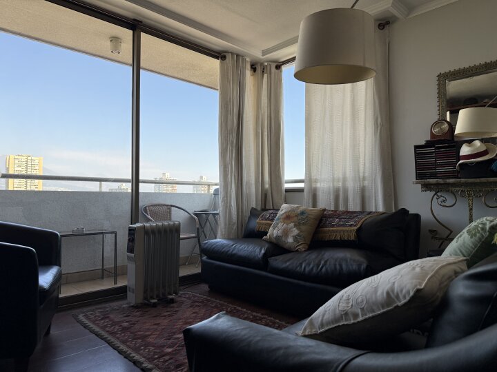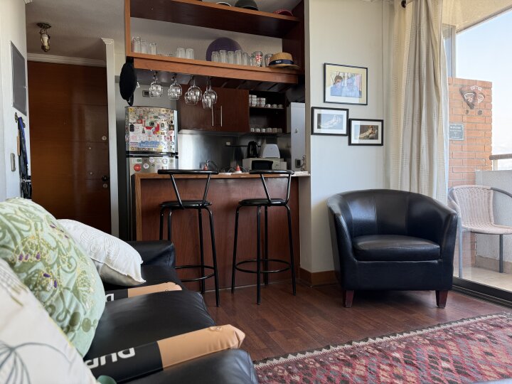 Excelente arriendo amoblado, a 6 minutos del metro Colón L4. Cercano a zona de bares y restaurantes. Departamento con preciosa vista a la cordillera y también orientación sur en su segunda terraza. Cocina integrada y muy bien equipada, cuenta con todo lo que se requiere para vivir comodamente cada día. Incluye lavadora, secadora, lavavajillas, microonda, despensa para mercadería y accesorios de aseo. Living espacioso, dormitorio en suite y buenos closets, con caja de seguridad en uno de ellos. Gracias a sus ventanales tiene estupenda luminosidad en general. Incluye 1 estacionamiento en subterráneo. Gastos comunes $ 145. 000.- Garantía: 2 meses El edificio incluye conserje las 24 horas, gimnasio, piscina, juegos infantiles, sala de eventos, estacionamientos de visita y de emergencia. Requisitos: Persona Natural debe presentar: Cédula de identidad vigente (extranjeros con cédula definitiva) Contrato de trabajo Acreditar ingresos con últimas 6 liquidaciones de sueldo Certificado con las últimas 12 cotizaciones previsionales Acreditar ingresos superiores a 3 veces el precio del canon de arriendo Presentar informe de Dicom Platinium 360