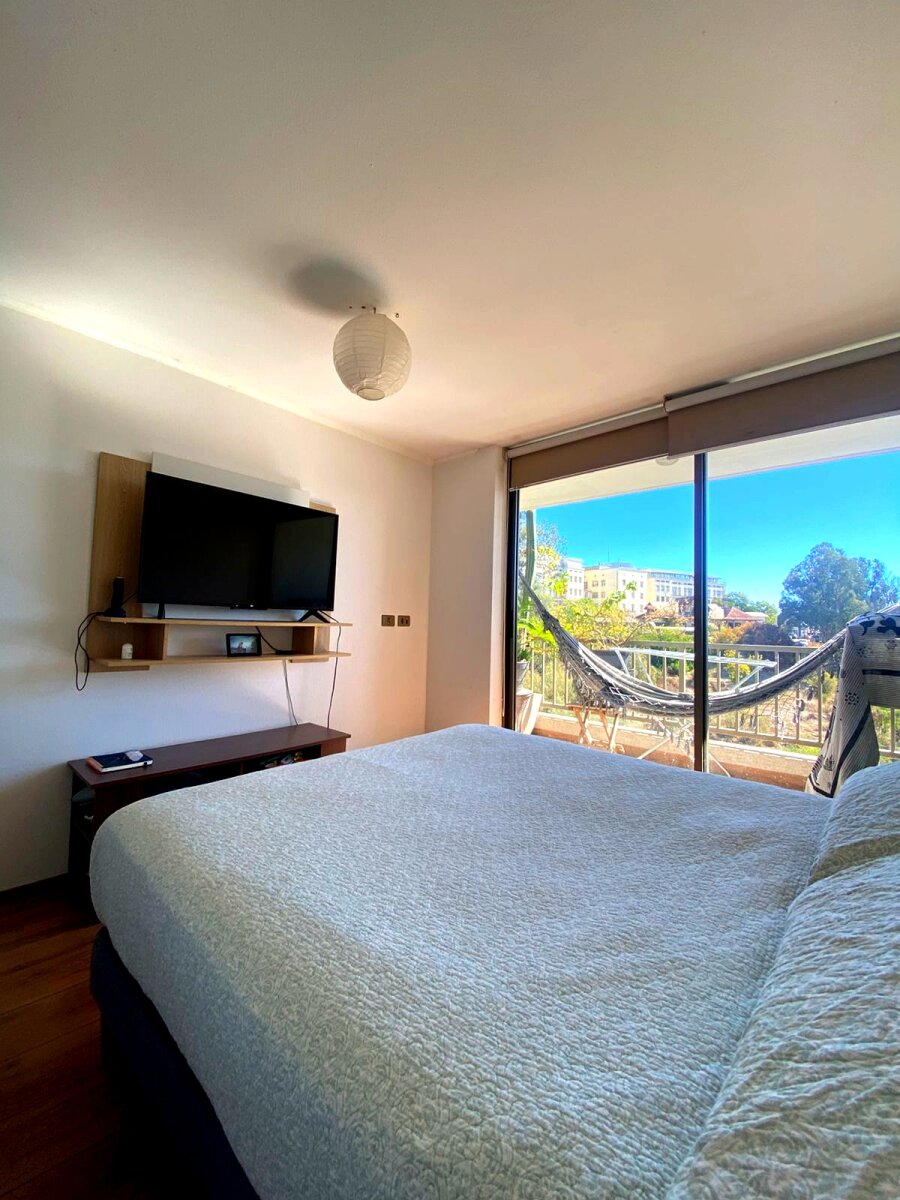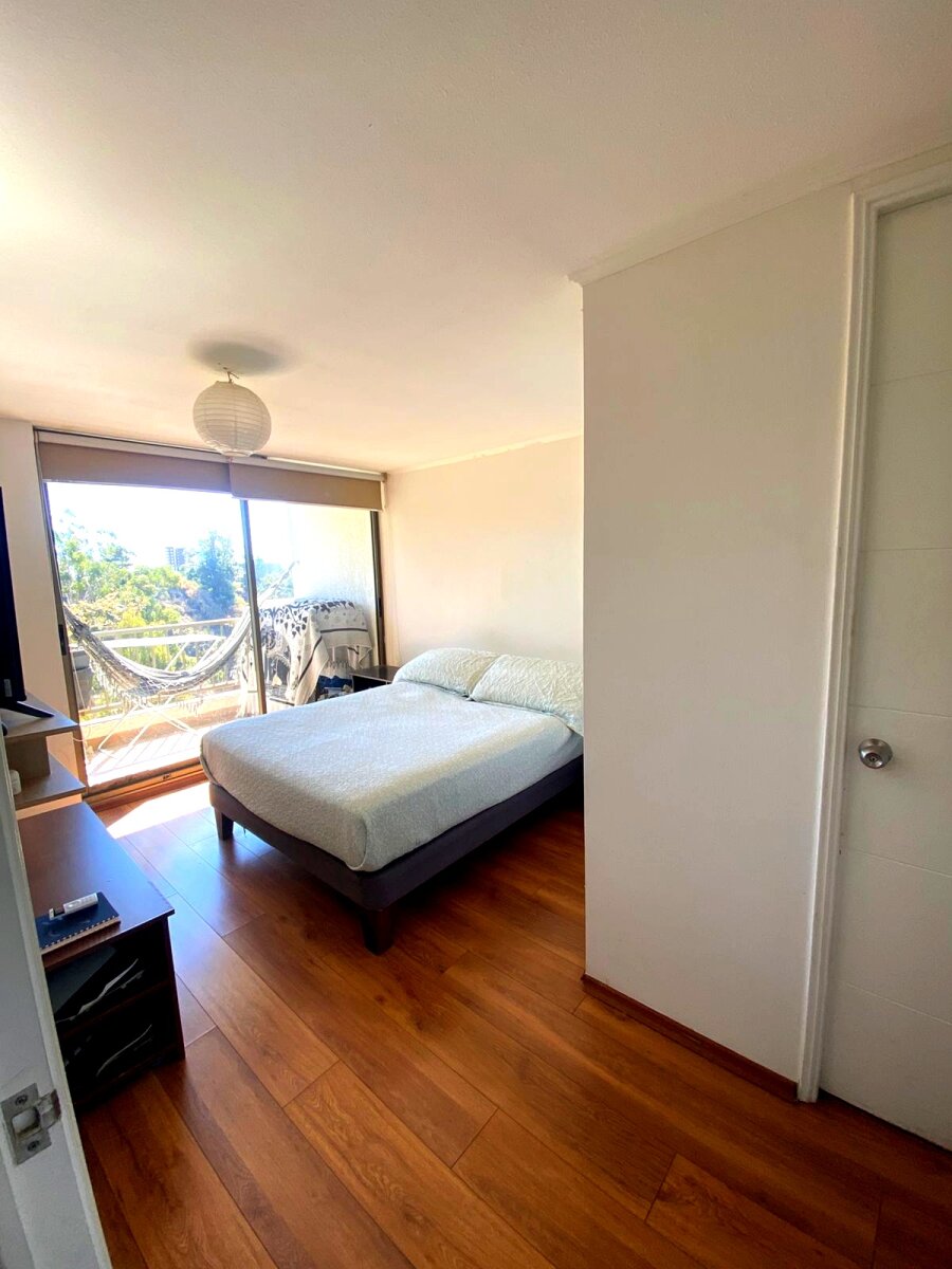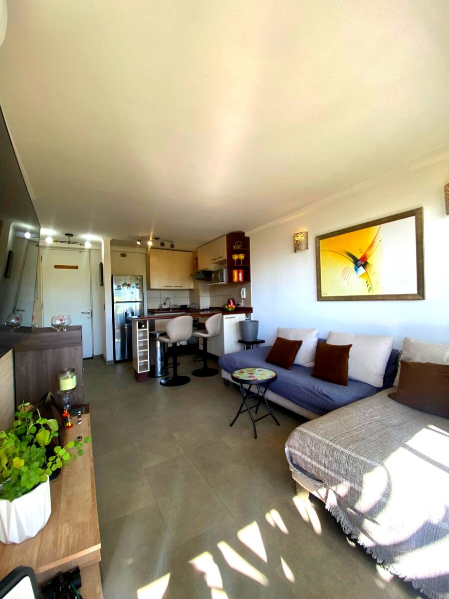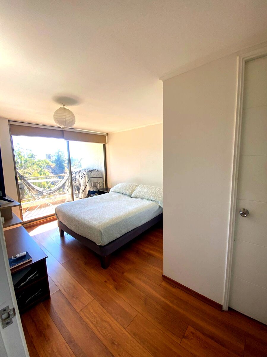 Departamento ubicado en el Edificio Valle Los Ingleses 1, Cerro Los Ingleses, Valparaíso. Cuenta con 2 dormitorios, 2 baños, cocina americana y piso de porcelanato. La unidad dispone de terraza, estacionamiento. El edificio ofrece excelentes amenidades: piscina, quincho, gimnasio y lavandería. Gasto común entre $85.000 y $100.000. Precio de venta: 2.300 UF.
