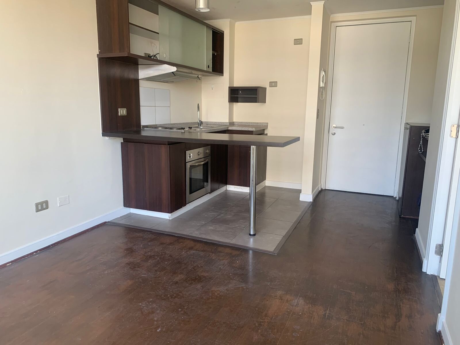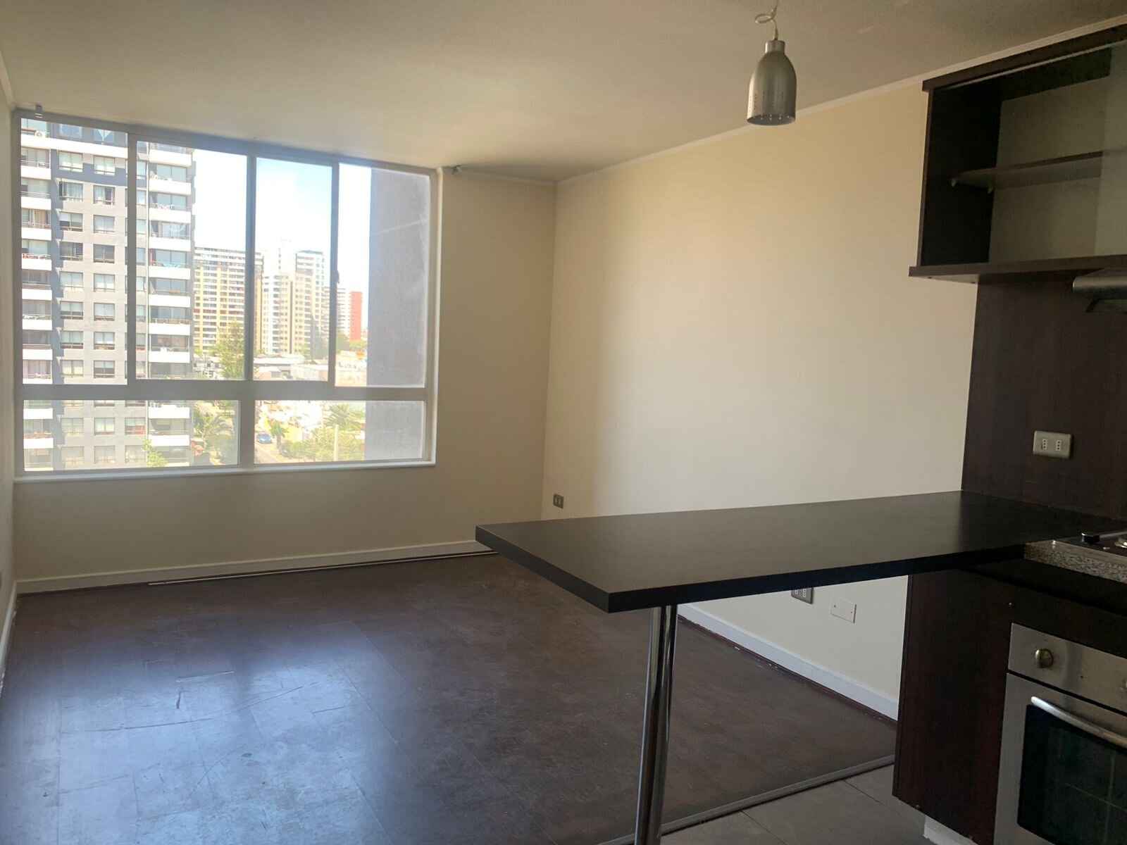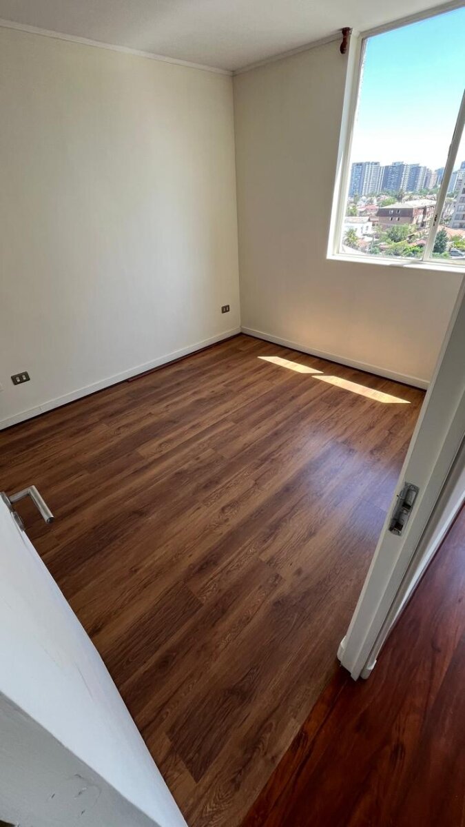Se arrienda departamento de 1 dormitorio, 1 baño, conexión para lavadora, sin terraza, piso flotante en todo el departamento, recién pintado.