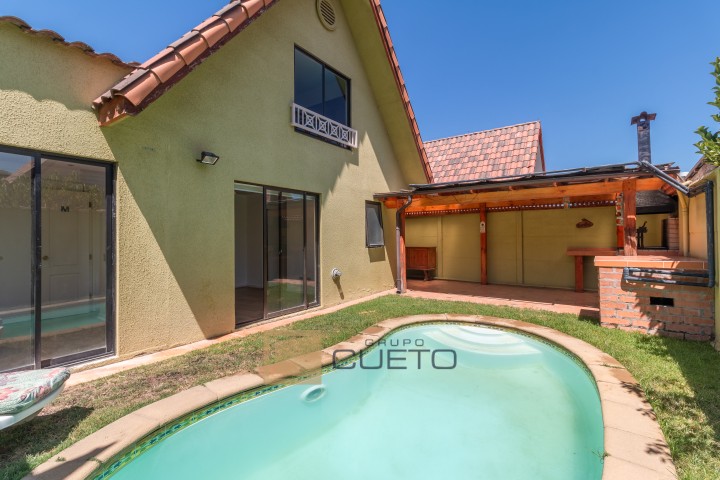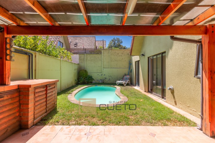 Grupo Cueto vende amplia y acogedora casa ubicada en el consolidado Condominio Jardines de Paso Hondo, en la comuna de Quilpué, un sector residencial altamente valorado por su tranquilidad, seguridad y excelente conectividad. La propiedad cuenta con 220 m² de terreno y 118 m² construidos, distribuidos en dos pisos, ofreciendo espacios cómodos y muy bien aprovechados para la vida familiar. En el primer piso encontrarás un luminoso living comedor, un acogedor estar, un baño completo, un dormitorio, y una amplia cocina tradicional amoblada con comedor de diario y logia. El exterior destaca un hermoso quincho con terraza, ideal para reuniones y celebraciones, además un agradable patio con piscina, perfecto para disfrutar en familia, junto a un cuidado antejardín y dos estacionamientos cubiertos. En el segundo piso se ubican dos dormitorios con closet y un baño completo, conformando un sector privado y cómodo para el descanso. En total, la vivienda dispone de 3 dormitorios y 2 baños. Esta es una casa muy linda, amplia y acogedora, ideal para quienes buscan comodidad, funcionalidad y un entorno seguro para vivir. El condominio es cerrado, con vigilancia 24/7, control de acceso, excelente nivel de seguridad, entorno residencial consolidado y áreas comunes bien mantenidas. Además, se encuentra cercano a locomoción colectiva, supermercados, comercio, colegios, universidades, centros de salud y servicios, con rápida conexión a las principales vías de la comuna. Una excelente oportunidad para vivir en un entorno tranquilo, seguro y con todo lo que tu familia necesita. Para visitas coordinar con Grupo Cueto Propiedades.