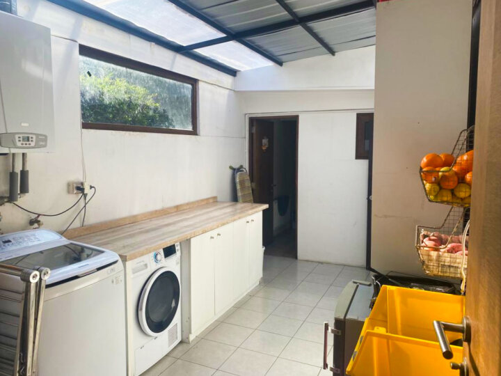 Hermosa e iluminada Casa remodelada de 1 piso, con orientación oriente, norte y poniente, cercana a colegios, clínicas, autopista Kennedy, Mall Alto Las Condes, restaurantes, farmacias y comercio en general. A Cuadras de próximos Metros Padre Hurtado y Gerónimo de Alderete (L7) DISPONIBLE A PARTIR DEL 01 DE JUNIO DE 2026 / CONTRATO DE ARRIENDO EN U.F. 3 DORMITORIOS + 3 BAÑOS + LIVING + COMEDOR + SALA DE ESTAR + COCINA TRADICIONAL + LOGIA + DORMITORIO DE SERVICIO CON BAÑO + 2 ESTACIONAMIENTOS + PISCINA. Distribución: Hall de Entrada con acceso a: living y comedor con bigas a la vista + baño de visita + cocina full equipada con comedor de diario con salida a amplia logia. Dormitorio principal en suite con salida a terraza, con walk in closet de buen tamaño + baño con tina y tragaluz. Segundo y tercer dormitorio de buen tamaño con salida a patio lateral + Segundo baño con tina y tragaluz. Amplia sala de estar. Dormitorio de servicio con baño completo. Toda la casa cuenta con piso porcelanato, ventanales de termopanel y calefacción por radiadores. Estacionamiento para 2 vehículos, 3 sectores de terraza + piscina y áreas verdes. NO DEJE DE VISITAR.!