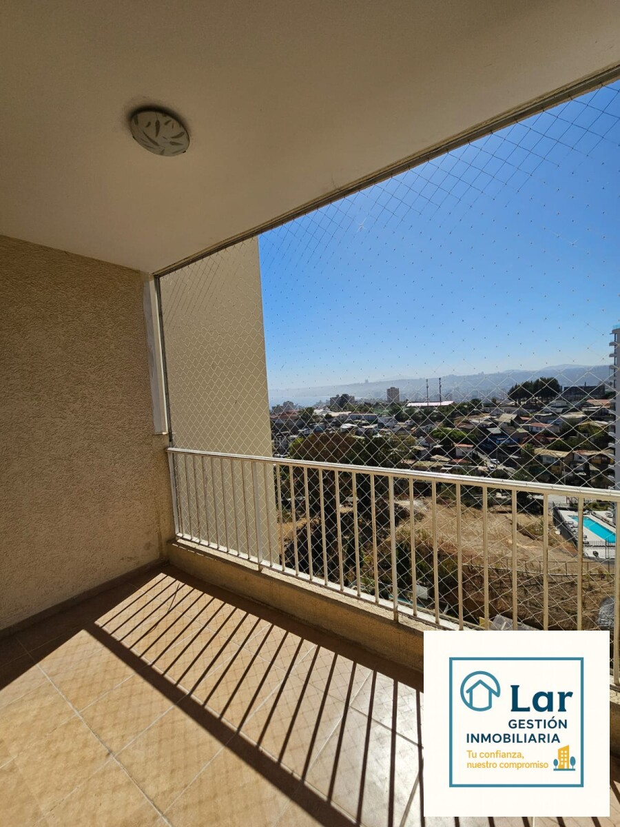 ¡Oportunidad en Recreo Alto! Se arrienda departamento en piso 11, con excelente conectividad por Agua Santa hacia Santiago, Valparaíso y el centro de Viña del Mar. Cuenta con 3 dormitorios, 2 baños, sala ideal para home office, living comedor con salida a balcón y cocina independiente con logia. Incluye estacionamiento y bodega. Condominio con piscina, gimnasio, áreas verdes, sala multiuso, conserjería 24/7 y terraza panorámica. Gastos comunes aprox.: $100.000.