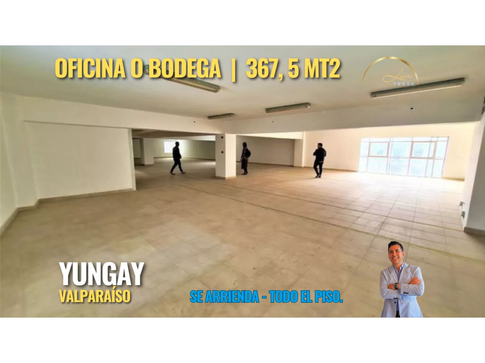 Se arriendan 6 pisos de oficinas planta libre | Centro de Valparaíso | Detrás Universidad católica. A un millón por piso. CERCANO A: A pasos de las principales avenidas de Valparaíso (Av. Argentiva, Yungay y Pedro Montt) , Terminal de buses, Estación de metro Barón, mercado Cardonal, supermercado Santa Isabel. PRIMER PISO: 14,3m*25,7 m= 367, 5 mt2 Con baño, escalera y ascensor de 1,7m x1,7m= 3mt2 (ARRENDADO) SUBTERRANEO: 14,3m*25,7 m= 367, 5 mt2, escalera y ascensor de 1,7m x1,7m= 3mt2 (VALOR $800.000 ) SEGUNDO PISO: 14,3m*25,7 m= 367,5 mt2 Con 2 baños, oficinas, escalera y ascensor de 1,7m x1,7m= 3mt2, más patio de11,5m x 3,2m = 37m2 (ARRENDADO) TERCER PISO: 14,3m*25,7 m= 367,5 mt2 Con escalera y ascensor de 1,7m x1,7m= 3mt2 (VALOR $1.200.000) CUARTO PISO: 14,3m*25,7 m= 367,5 mt2 Con escalera y ascensor de 1,7m x1,7m= 3mt2 (ARRENDADO) QUINTO PISO: 14,3m*25,7 m= 367,5 mt2 Con tragaluces, escalera y ascensor de 1,7m x1,7m= 3mt2 (ARRENDADO). OTROS: 1.835 m2 construidos más 37m2 de patio = 1.872 m2 totales. Completa construcción de hormigón armado, protecciones en todos los accesos posibles, red de agua de incendio. Precios conversables. Motor de ascensor en excelentes condiciones. Muy buena ubicación, a pasos del paradero en plena Av. Yungay . Buena seguridad por protecciones y alarma en todos los accesos. Ideal para comercio, almacenaje u oficinas. Contamos con la experiencia y respaldo de: Lux Terra Propiedades, con altos estándares a todos nuestros clientes incluyendo servicios digitales, legales, y notariales hasta terminar con la llave en su mano. Considerar 50%+impuesto de 1 mes de agencia inmobiliaria. Este local es perfecto para ti, te encantara. No busques más, ¿Qué esperas para conocerla? Contáctame y la vamos a ver juntos. Gabriel Jaramillo +56990169369
