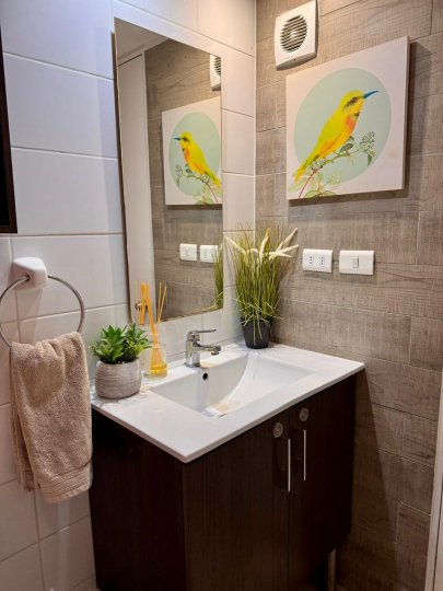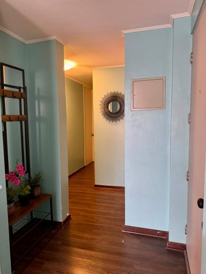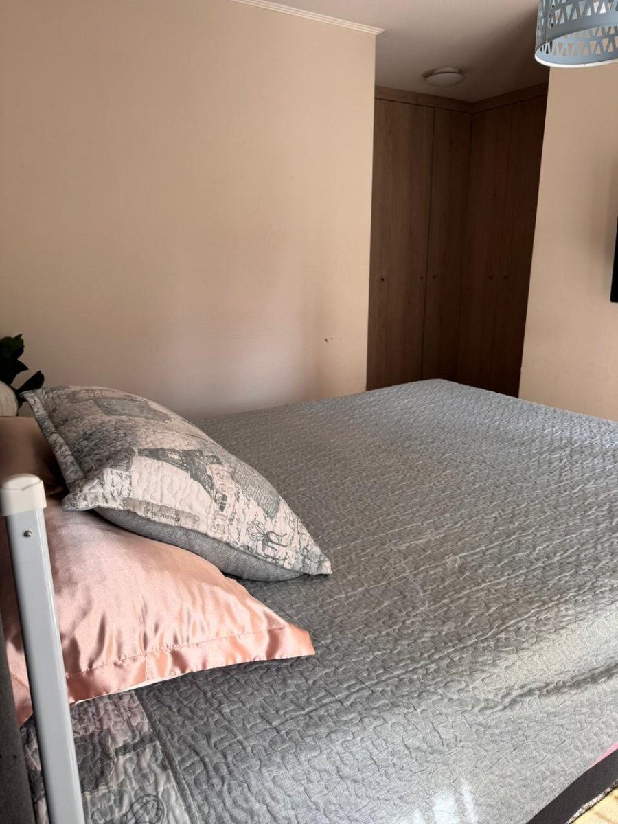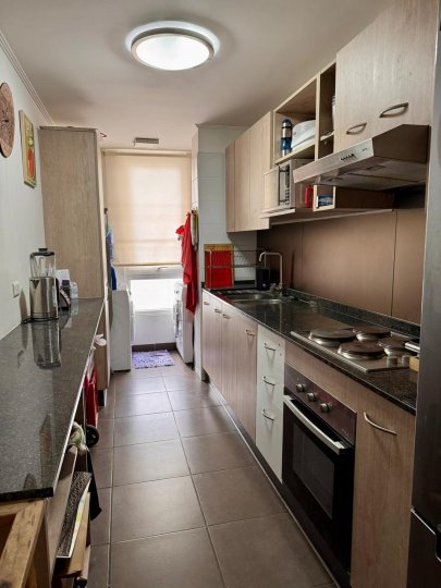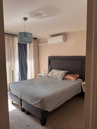 Se vende amplio departamento que cuenta con tres dormitorios grandes, el principal en suite y con amplia terraza de 10 m2 aproximadamente, con amplio vestidor y aire acondicionado, los dormitorios dos y tres también son grandes, cabe en ambos una cama de dos plazas, también tienen un closet grande cada uno y los tres dormitorios son alfombrados, en el dormitorio dos también hay aire acondicionado. El departamento tiene un pequeño hall de acceso, y separados los dormitorios del living comedor, hacia la derecha del acceso el hall y un gran closet para guardar chaquetas y también con amplios cubículos. Frente a la entrada está la puerta de la cocina que es bastante amplia, cuenta con abundantes muebles, una despensa, campana, encimera eléctrica, horno eléctrico, espacio para el refrigerador a la entrada y un mesón a todo lo largo de la cocina que facilita mucho las tareas cotidianas, Además al final de la cocina tiene espacio e instalación para la lavadora y secadora. Los dos baños son con tinas y extractor. El living comedor tiene salida a un balcón y también tiene aire acondicionado, El piso aquí y en el pasillo es flotante, y en la cocina y los baños piso cerámico. El edificio cuenta con piscina, quinchos, dos salones de eventos, dos gimnasios, y una plaza de juegos para niños de primera edad. Seguridad 24/7, circuito cerrado de televisión, acceso controlado. Además, el Condominio se encuentra a una cuadra del Supermercado Líder, con farmacias 24 horas a pasos, con acceso a locomoción colectiva a la puerta, con muchos colegios particulares y gratuitos en la zona, y con excelente acceso a servicios en general. En los próximos años con estación de metro a una cuadra lo que elevará mucho la plusvalía. NO dejes de visitar, es una excelente ubicación y muy buena plaza para vivir. Incluye estacionamiento y bodega en subterráneo y paga 115 mil de gastos comunes, más el consumo del agua caliente, que es por caldera.
