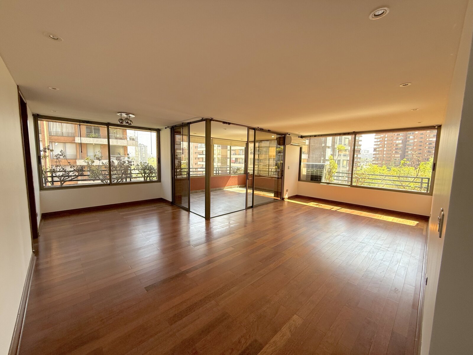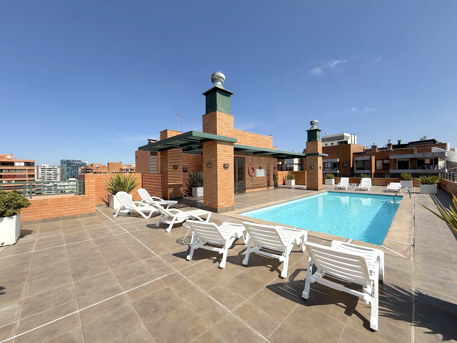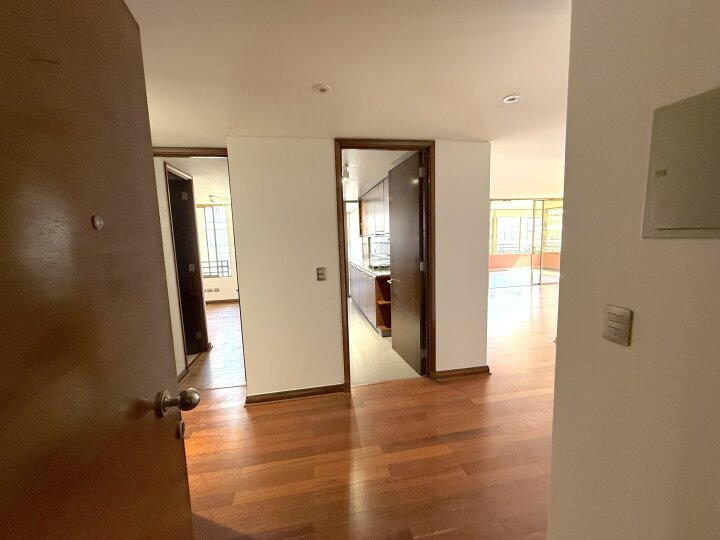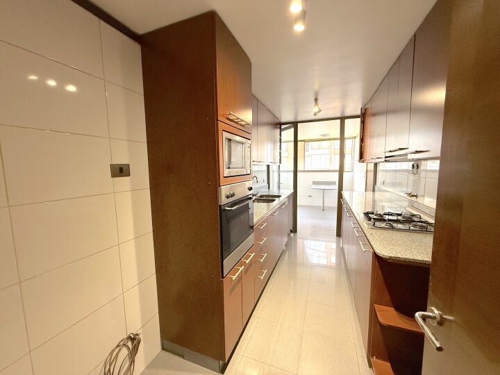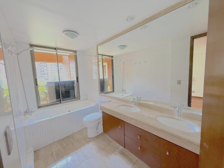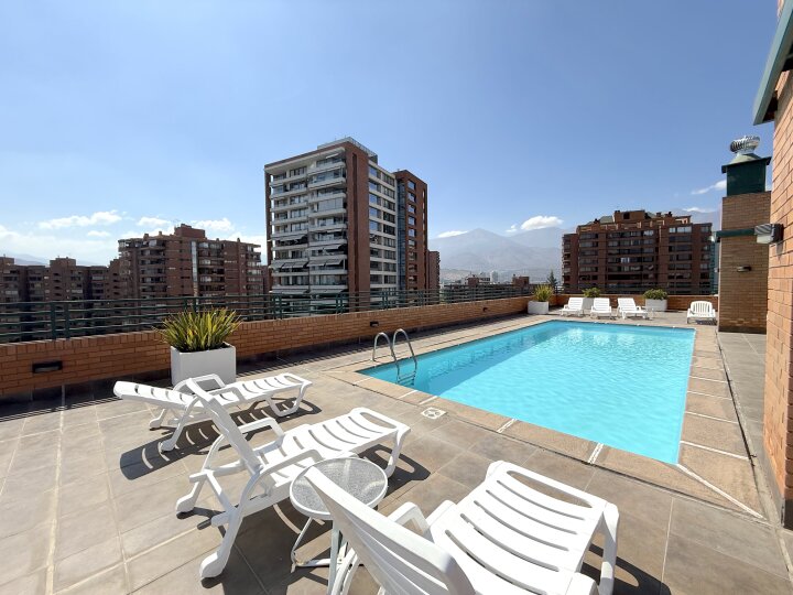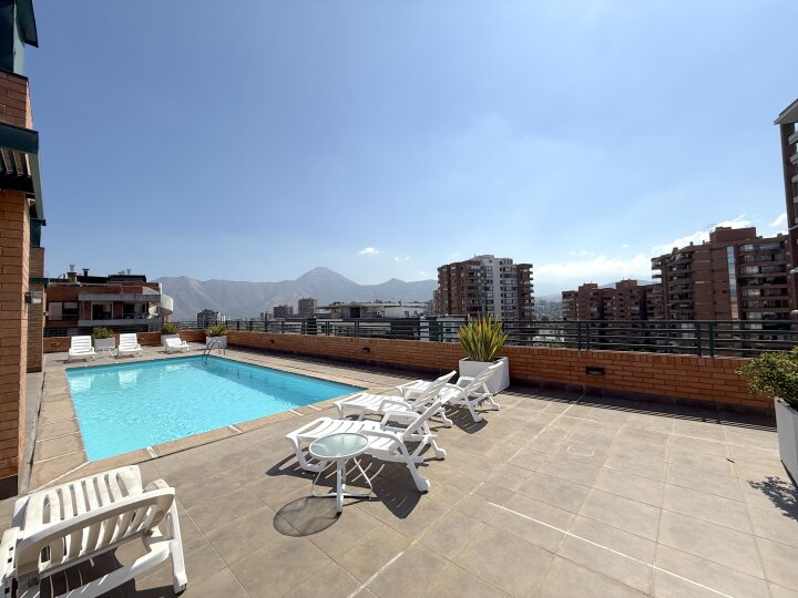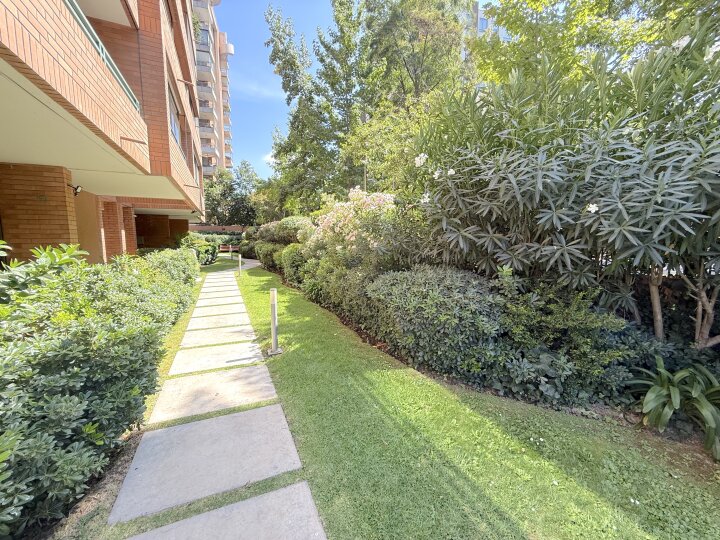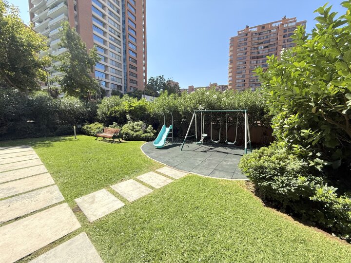 Departamento con excelente ubicación y conectividad en Las Condes, en el tradicional y tranquilo sector de calles Estocolmo con Noruega. A menos de 10 minutos caminando del Parque Juan Pablo II, Parque Araucano y la estación Manquehue. Cercano a supermercados, Apumanque, Parque Arauco, colegios y servicios. Acceso expedito a vías principales como Apoquindo, Manquehue y a Av. Kennedy/autopista Costanera Norte. El departamento tiene orientación nor-oriente. Cuenta con cuatro dormitorios y cuatro baños. Dos de los dormitorios en suite y con walking closet. Baño principal con tina con hidromasaje. Además, 3 de los dormitorios tienen terraza. Hall de acceso. Living comedor muy amplio con salida a terraza. Cocina independiente, amoblada con cubiertas de granito y equipada con encimera a gas, horno eléctrico, microondas y campana. Comedor de diario y amplia logia. Pisos de madera en living comedor y pasillos; dormitorios con piso flotante; cocina y baños con piso de porcelanato. Todas las terrazas están cerradas con ventanas termoacústicas. Aire acondicionado en living comedor y dormitorio principal. Calefacción por losa radiante. Además, incluye dos estacionamientos subterráneos y bodega. El edificio tiene piscina en azotea panorámica, gimnasio, sala de eventos amoblada y con cocina, sala de reuniones, amplios jardines con juegos infantiles, estacionamientos de visita Además, cuenta con cámaras de seguridad en espacios comunes, conserjería y acceso controlado 24/7.