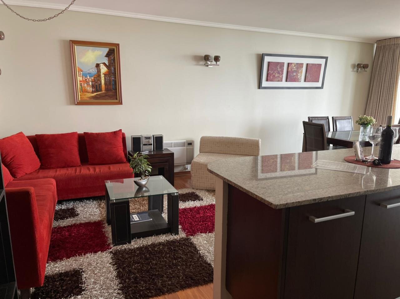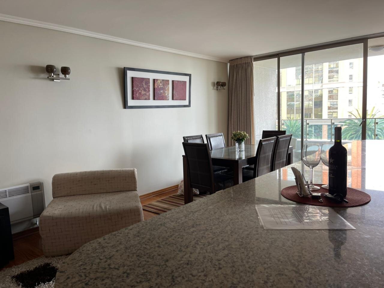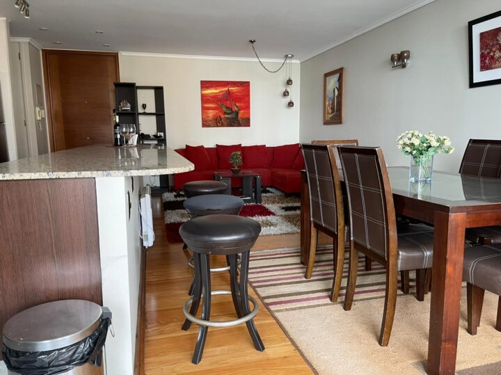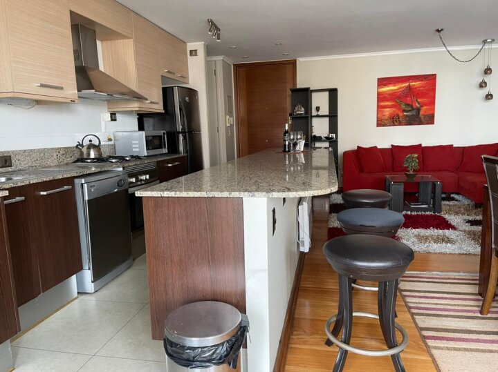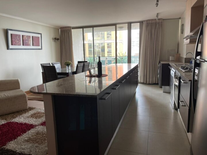 Departamento con excelente ubicación en Nueva Libertad, a pasos de los mall Marina Arauco y Espacio Urbano, parque Las Salinas, Av. San Martín, supermercados, restaurantes, servicios, centros deportivos y de salud. Muy buena conectividad por avenidas principales hacia el norte, sur y el interior de la región. El departamento está amoblado y cuenta con 2 amplios dormitorios y 2 baños, principal en suite y con walking closet. Living comedor amoblado con cocina integrada amoblada con cubiertas de granito y amplia isla, equipada con refrigerador, encimera a gas, horno eléctrico, microondas y campana. Instalación para lavadora. Amplia terraza con vista que recorre todo el departamento. Incluye un estacionamiento. El edificio cuenta con dos piscinas (interior temperada y exterior), gimnasio, sauna, lavandería, estacionamientos de visita. Seguridad y accesos controlados 24/7